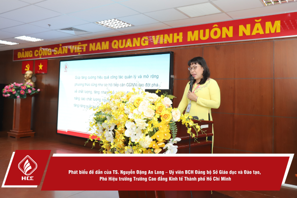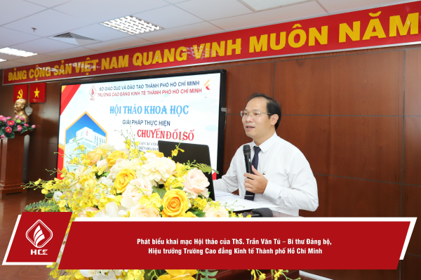 Phát biểu tại hội thảo, ThS. Trần Văn Tú – Bí thư Đảng bộ – Hiệu trưởng Trường Cao đẳng Kinh tế TPHCM đã nhận định: việc thực hiện chuyển đổi số tại các cơ sở giáo dục nghề nghiệp đã từng bước bắt nhịp với xu thế chung và Chương trình chuyển đổi số trong giáo dục nghề nghiệp đến năm 2025 – định hướng đến năm 2030 của Thủ tướng Chính phủ. Tuy nhiên, trên thực tế triển khai, các cơ sở giáo dục cũng gặp phải một số khó khăn, vướng mắc về nguồn lực con người, về tài chính, ràng buộc bởi quy định về cơ chế. Hội thảo này là dịp để giao lưu, học hỏi kinh nghiệm lẫn nhau trên cơ sở thực tiễn triển khai chuyển đổi số của các đơn vị.