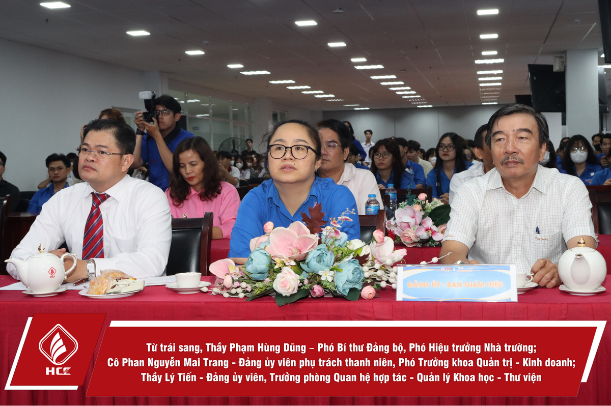 Tham dự Lễ kỷ niệm có Thầy Phạm Hùng Dũng – Phó Bí thư Đảng bộ, Phó Hiệu trưởng Nhà trường; Cô Phan Nguyễn Mai Trang – Đảng ủy viên phụ trách Thanh niên, Phó Trưởng khoa Quản trị – Kinh doanh; Thầy Lý Tiến – Đảng ủy viên, Trưởng phòng Quan hệ hợp tác – Quản lý Khoa học – Thư viện cùng quý khách mời đến từ các Phòng, Khoa, Trung tâm và hơn 200 cán bộ Đoàn từ Liên Chi đoàn và Chi đoàn trực thuộc.