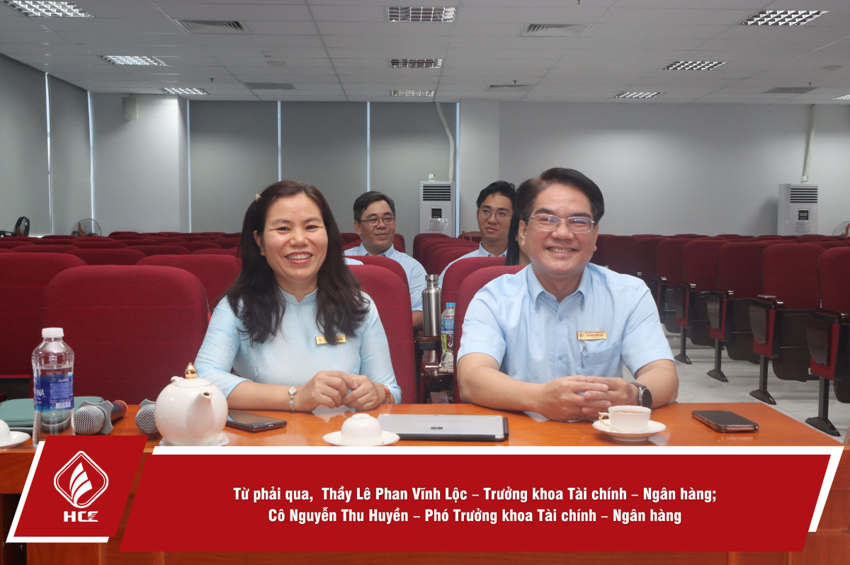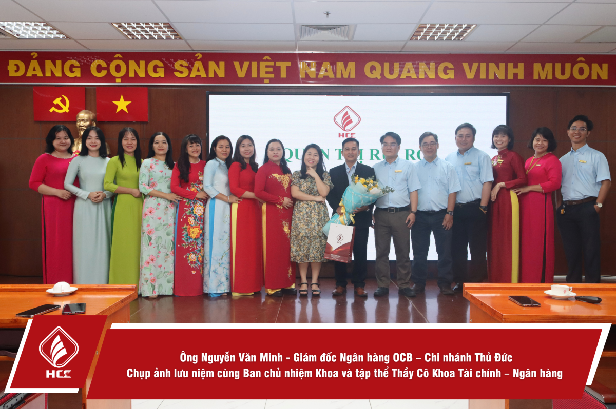 Đến tham dự báo cáo có Ông Nguyễn Văn Minh – Giám đốc Ngân hàng OCB – Chi nhánh Thủ Đức, báo cáo viên chương trình. Thầy Lê Phan Vĩnh Lộc – Trưởng khoa Tài chính – Ngân hàng; Cô Nguyễn Thu Hiền – Phó Trưởng khoa Tài chính – Ngân hàng cùng toàn bộ giảng viên, nhân viên của Khoa.