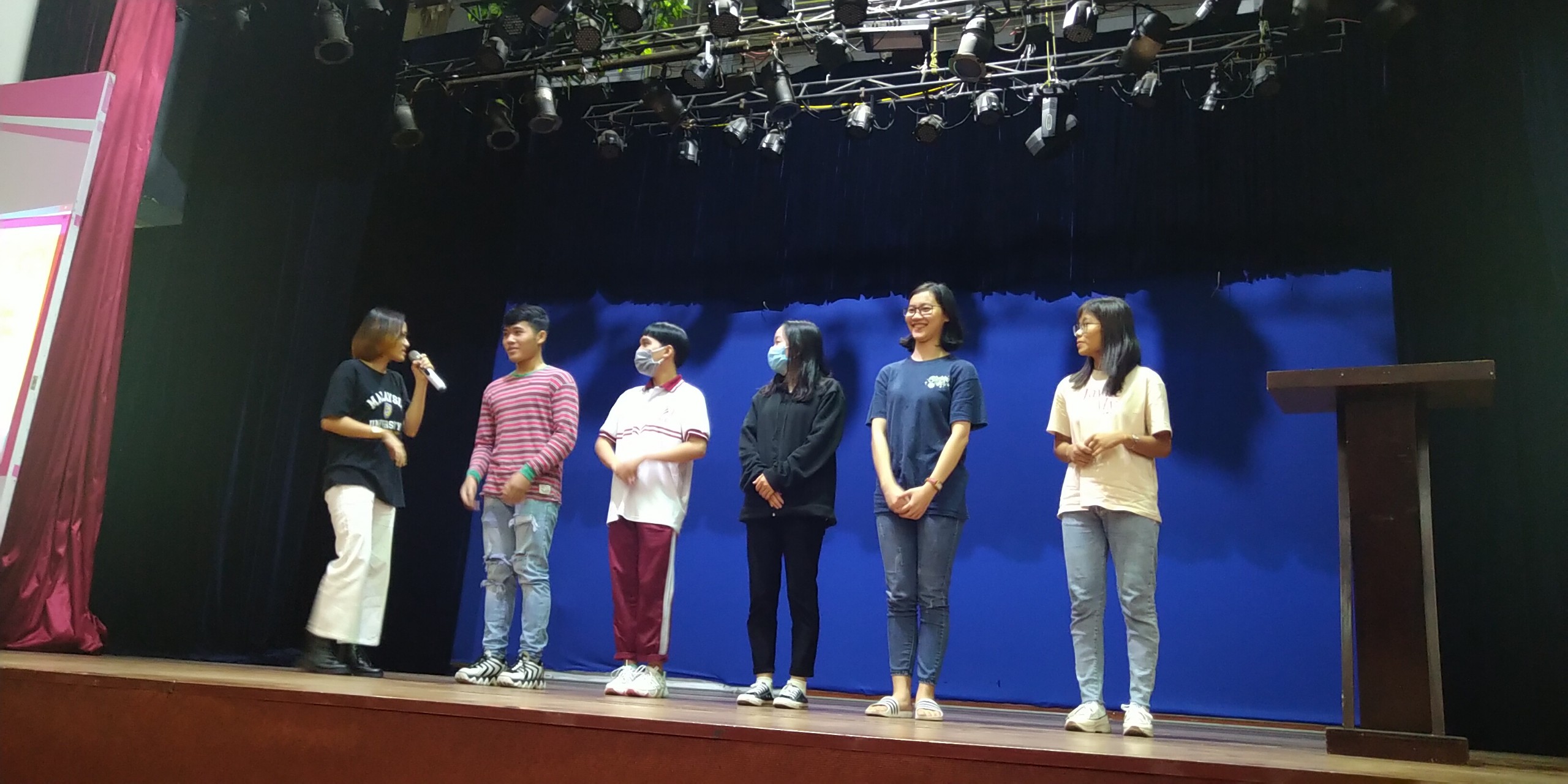 Sinh viên khóa 16 tham gia trò chơi trên sân khấu do Ban chủ nhiệm và Cộng tác viên Câu lạc bộ tổ chức.