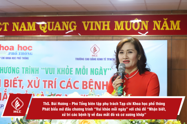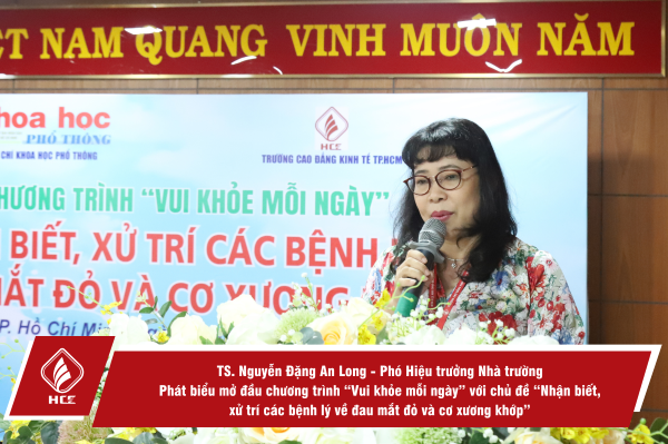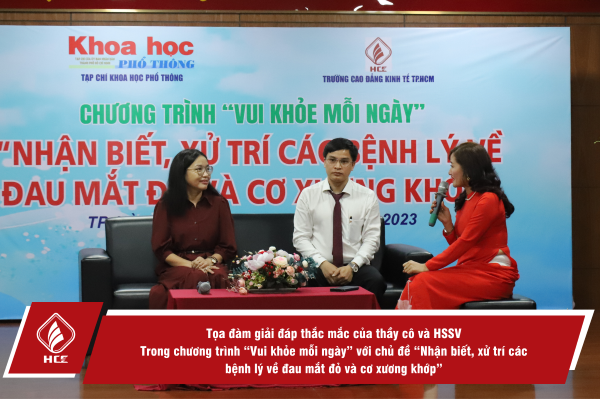 Sáng ngày 22/9/2023, Trường Cao đẳng Kinh tế Thành phố Hồ Chí Minh phối hợp cùng Tạp chí Khoa học phổ thông tổ chức Chương trình “Vui khỏe mỗi ngày”, chủ đề “Nhận biết, xử trí các bệnh lý về đau mắt đỏ và cơ xương khớp”