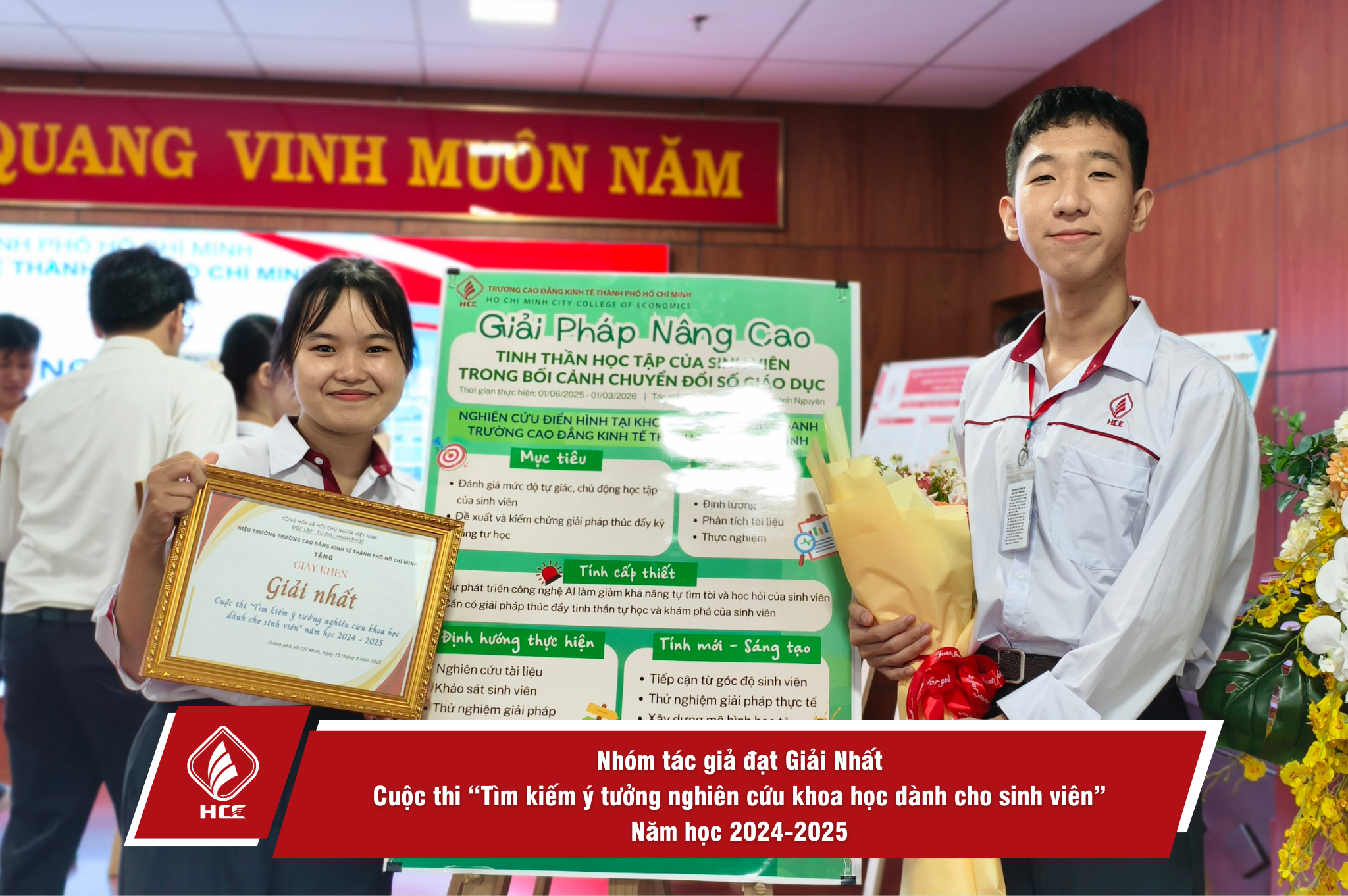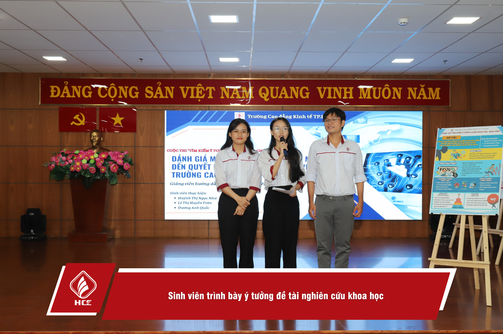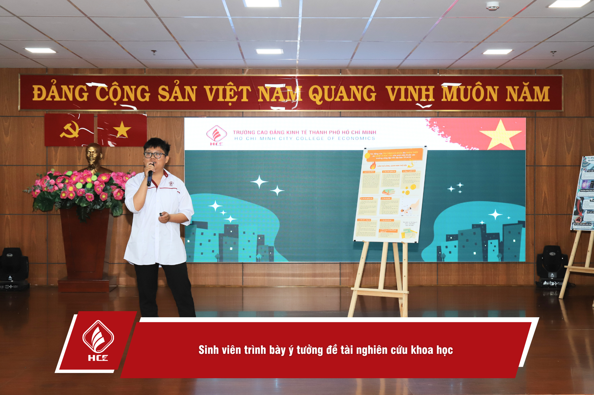 Sáng ngày 10/4/2025, Trường Cao đẳng Kinh tế Thành phố Hồ Chí Minh (HCE) tổ chức cuộc thi “Tìm kiếm ý tưởng nghiên cứu khoa học dành cho cho sinh viên” năm học 2024-2025. Các tác giả/nhóm tác giả đã mang trình bày ý tưởng nghiên cứu khoa học thuộc đa dạng các nội dung liên quan đến đời sống học tập và sinh hoạt của sinh viên.