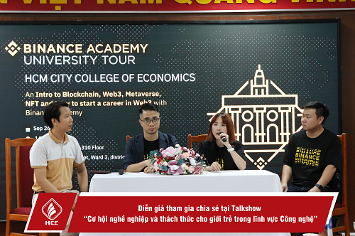 Trong vỏn vẹn hơn 2 giờ đồng hồ cùng ???????? “Cơ hội nghề nghiệp và thách thức cho giới trẻ trong lĩnh vực Công nghệ” được phối hợp tổ chức bởi Trường Cao Đẳng Kinh Tế Thành phố Hồ Chí Minh phối hợp với Sở Khoa học Công nghệ Thành phố Hồ Chí Minh và Học viện Binance Academy đã cung cấp cho các sinh viên HCE đầy đủ các kiến thức nền tảng và các khái niệm mới trong lĩnh vực công nghệ.