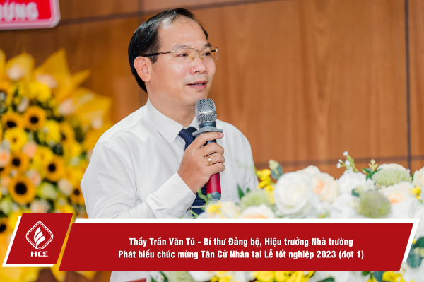 Phát biểu tại Buổi lễ, Thầy Trần Văn Tú – Hiệu trưởng Nhà trường đã gửi đến tân cử nhân lời chúc mừng thành quả mà các sinh viên đã đạt được. Khi chọn học tập tại HCE, các sinh viên đã có một niềm tin, vững tin và đối xử nghiêm túc với lựa chọn của mình trong suốt quá trình học tập và kết thúc một chuyến hành trình tuyệt vời nhất bằng tấm bằng cử nhân.