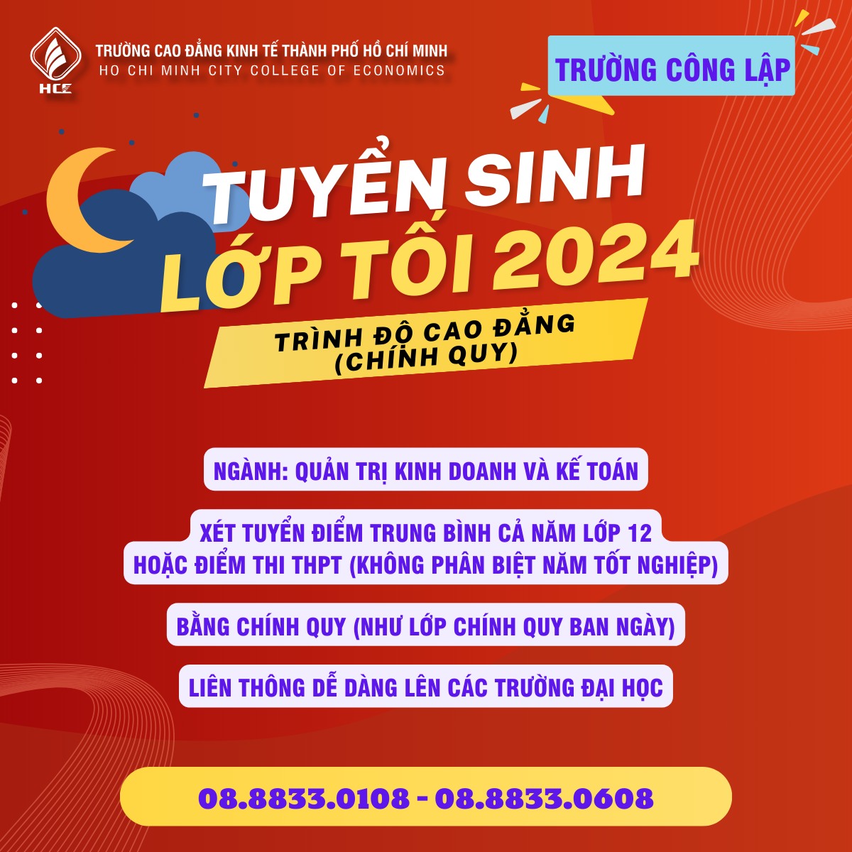 HCE TUYỂN SINH LỚP TỐI, BẰNG CHÍNH QUY NĂM 2024