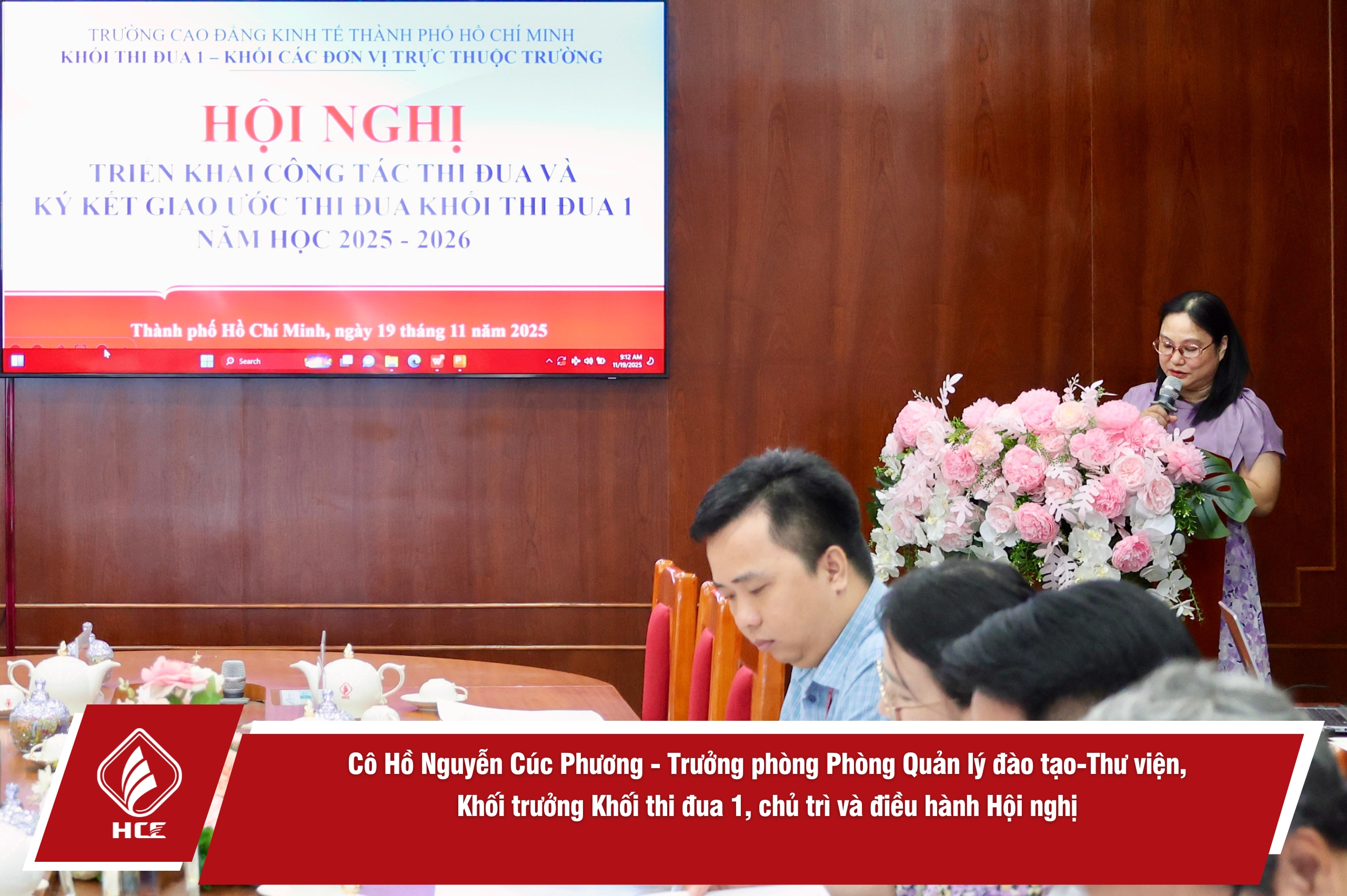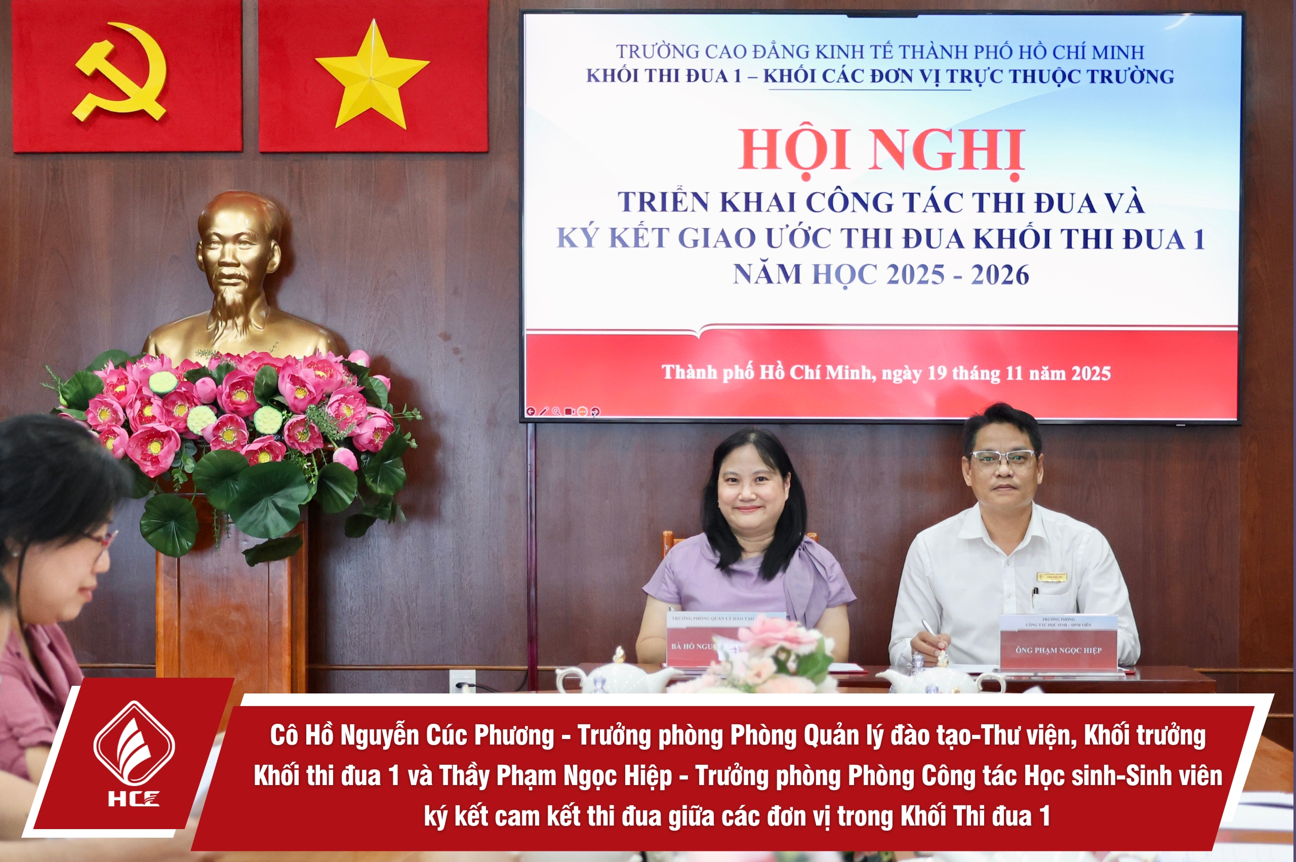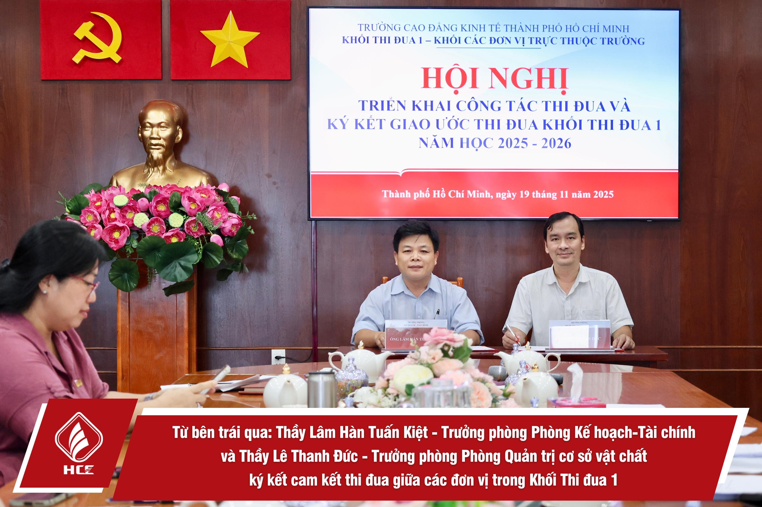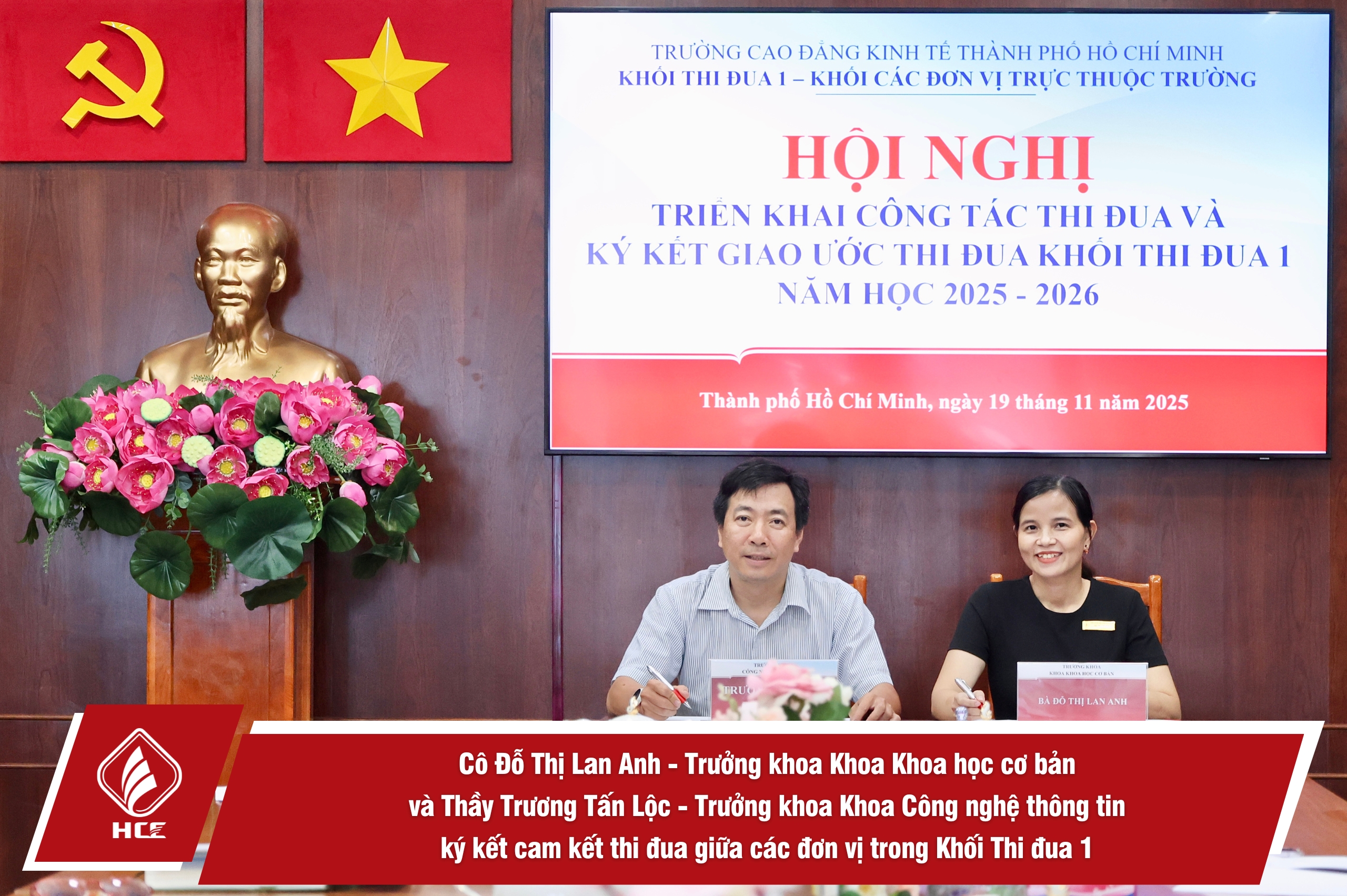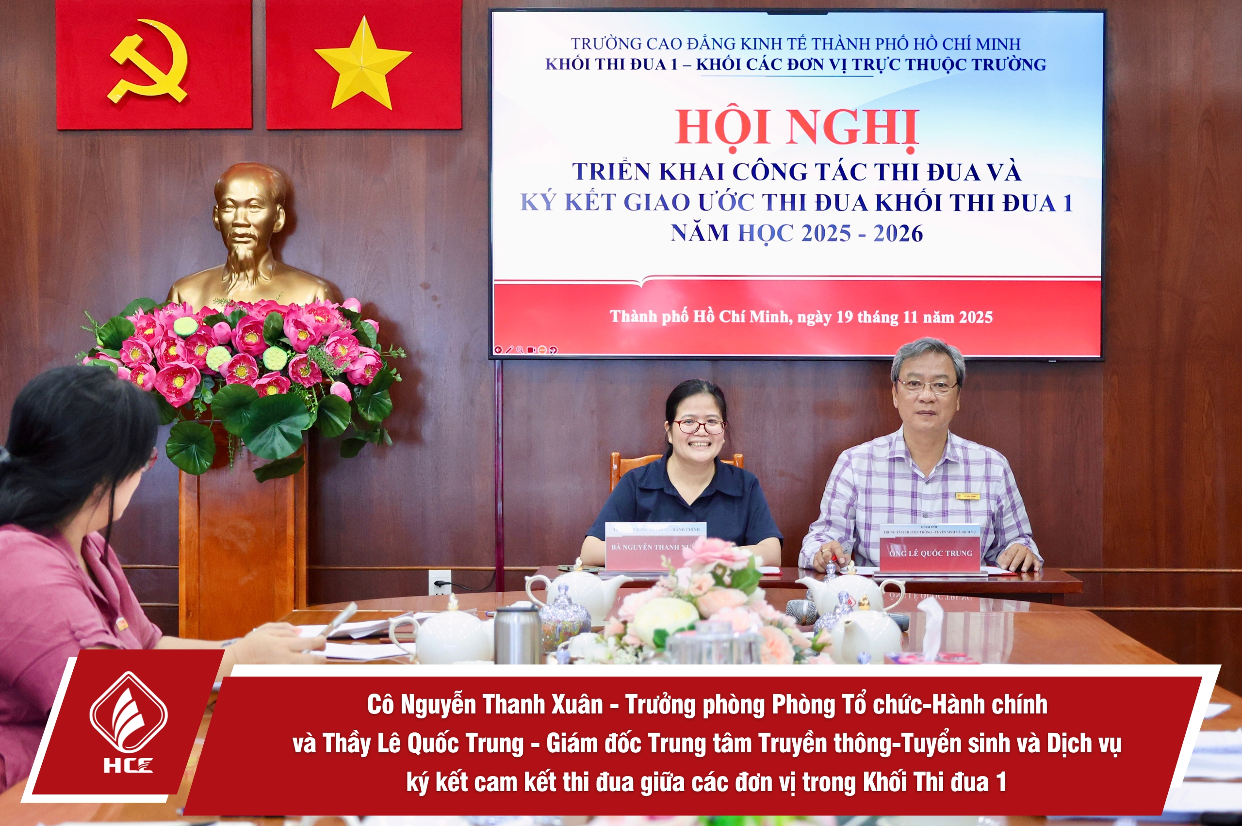Hội nghị ký kết giao ước thi đua năm học 2025-2026 của khối thi đua 01 đã diễn ra trong không khí trang trọng, đoàn kết và thống nhất cao, mở đầu cho một năm thi đua mới với tinh thần quyết tâm hoàn thành xuất sắc nhiệm vụ, góp phần vào sự phát triển bền vững của Trường Cao đẳng Kinh tế Thành phố Hồ Chí Minh.