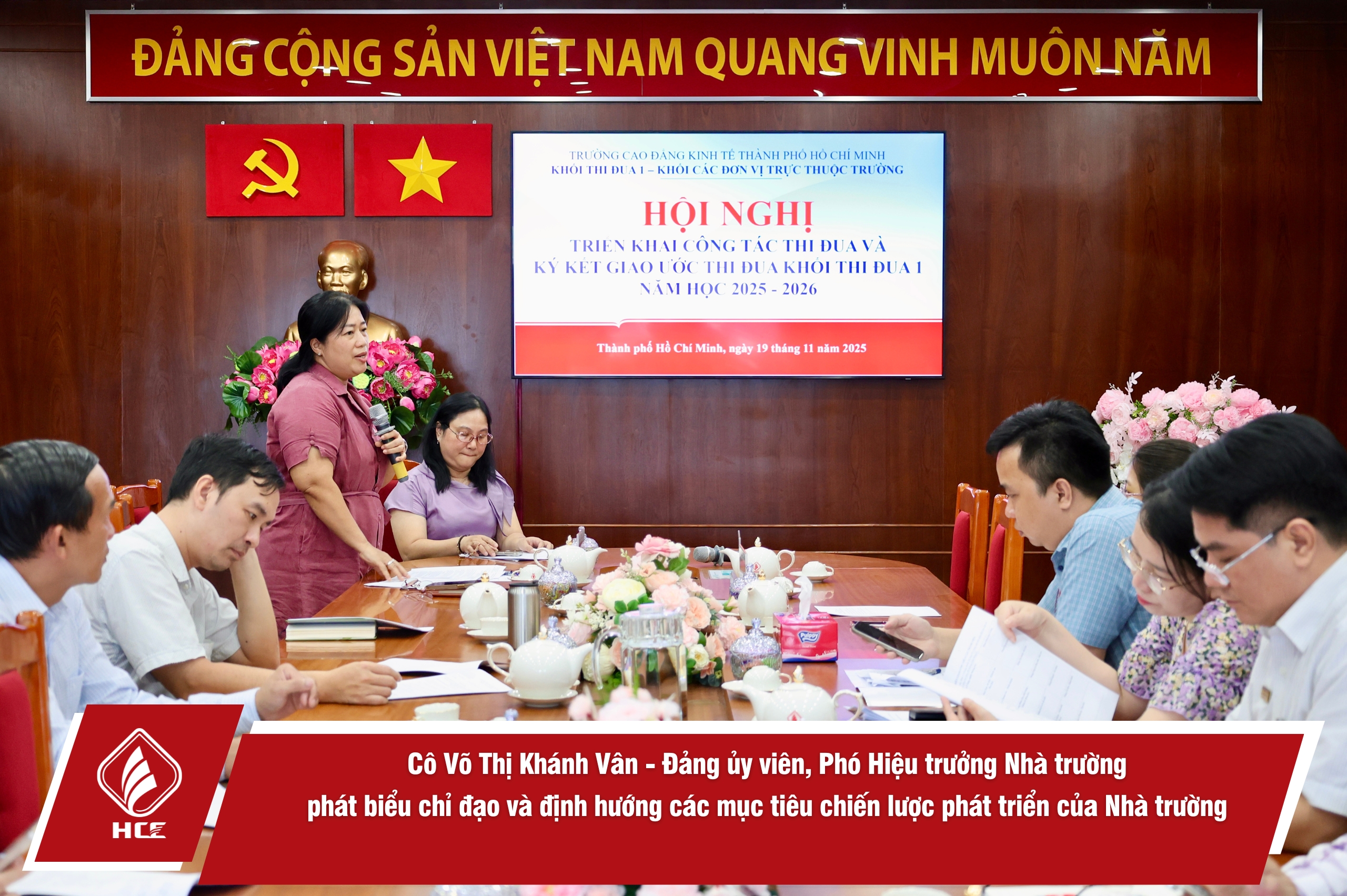 Tại hội nghị, các đại biểu đã nghe báo cáo, thảo luận, thống nhất nội dung giao ước thi đua năm học 2025 2026; đồng thời ký kết cam kết thi đua giữa các đơn vị trong khối. Các nội dung giao ước tập trung vào việc thực hiện tốt công tác quản lý, điều hành, cải cách hành chính, nâng cao hiệu quả thực hiện nhiệm vụ chuyên môn; đẩy mạnh phong trào thi đua, xây dựng tập thể đoàn kết, năng động, sáng tạo, áp dụng khoa học công nghệ trong giảng dạy và học tạp góp phần hoàn thành xuất sắc nhiệm vụ của Trường Cao đẳng Kinh tế Thành phố Hồ Chí Minh năm học 2025-2026.