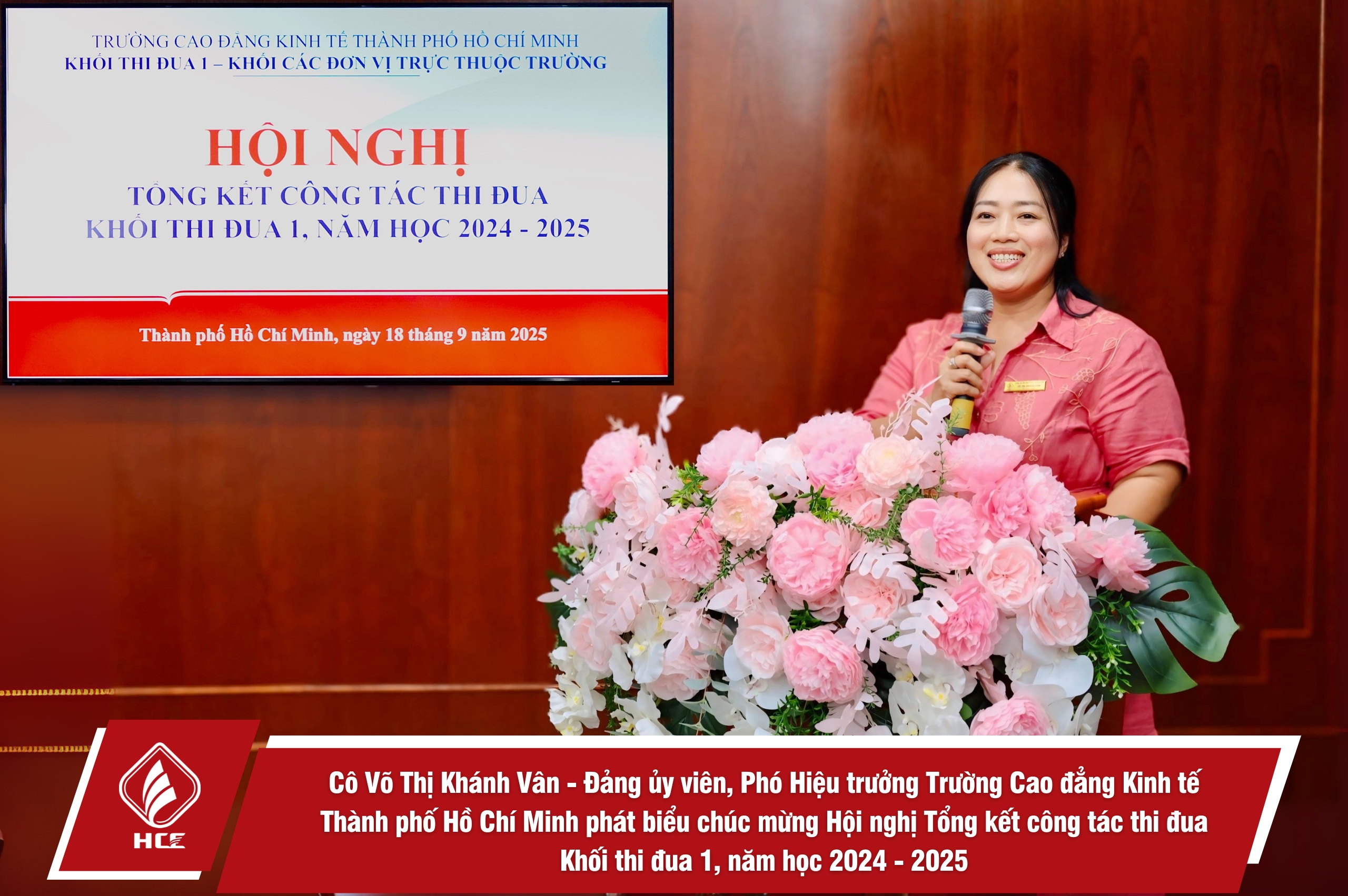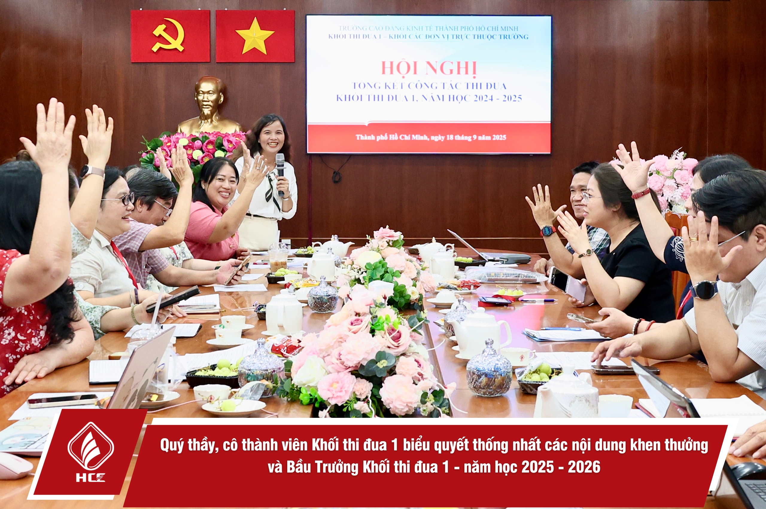 Ngày 18/9/2025, Khối thi đua 1 – Khối các đơn vị trực thuộc Trường Cao đẳng Kinh tế Thành phố Hồ Chí Minh đã tổ chức Hội nghị Tổng kết công tác thi đua của Khối thi đua 1 – Năm học 2024 – 2025.