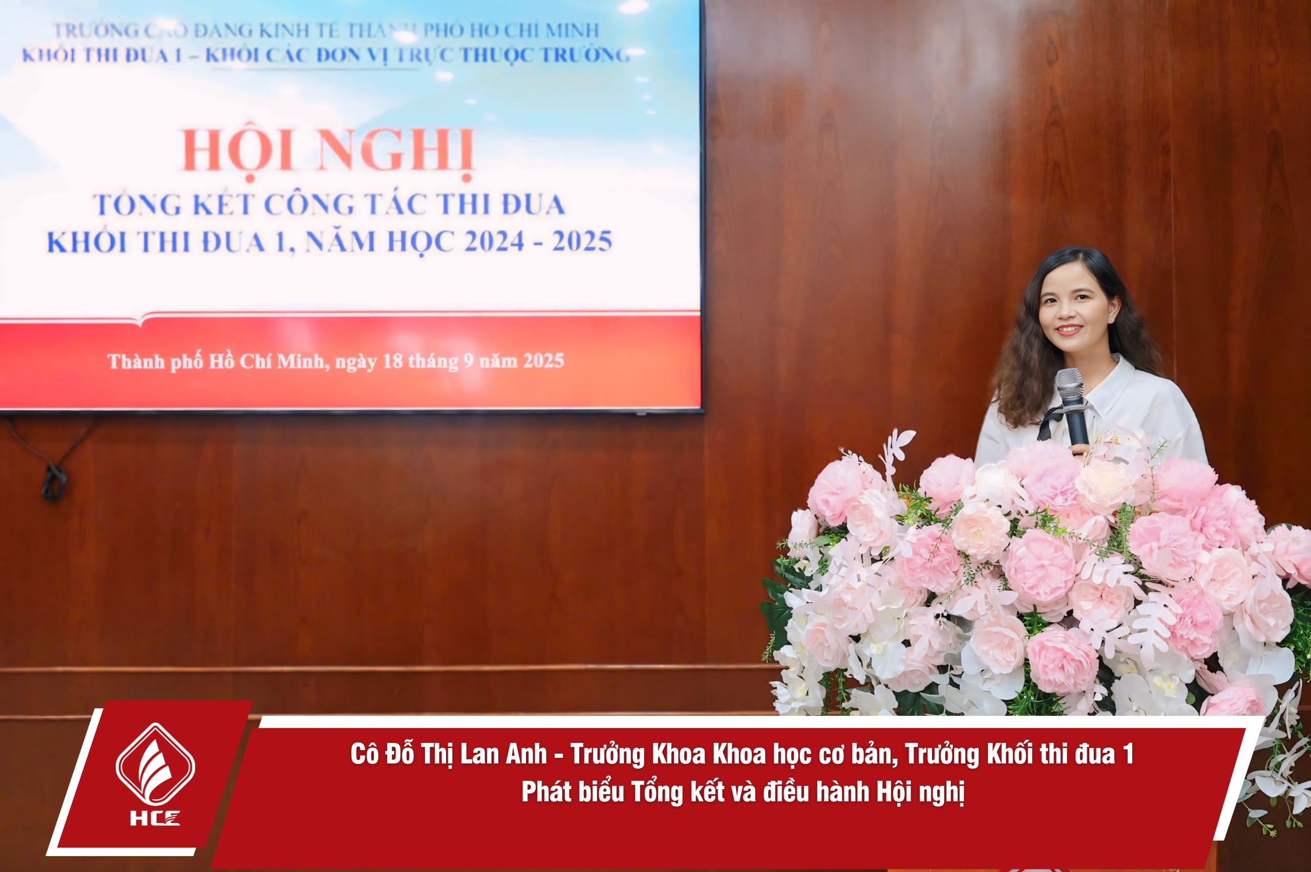 Hội nghị đã báo cáo Tổng kết công tác thi đua năm học 2024 – 2025 như sau: báo cáo kết quả thực hiện hoạt động phong trào thi đua của các đơn vị; Kết quả thực hiện các hoạt động phong trào thi đua của Khối và cấp trên; thảo luận, đóng góp ý kiến về những thuận lợi, khó khăn trong công tác thi đua của Khối. Hội nghị đánh giá cao hoạt động của khối trưởng Khối Thi đua 1 đã tổ chức nhiều hoạt động cho các đơn vị cùng tham gia, phát huy tinh thần đoàn kết giữa các đơn vị. Ngoài ra, Hội nghị thống nhất đơn vị dẫn đầu khối Thi đua – xét tặng Cờ thi đua Thành phố cho Khoa Khoa học cơ bản (khối trưởng Khối thi đua) và bầu đơn vị làm Khối trưởng Khối thi đua 1 là Phòng Đào tạo trong năm học 2025-2026.