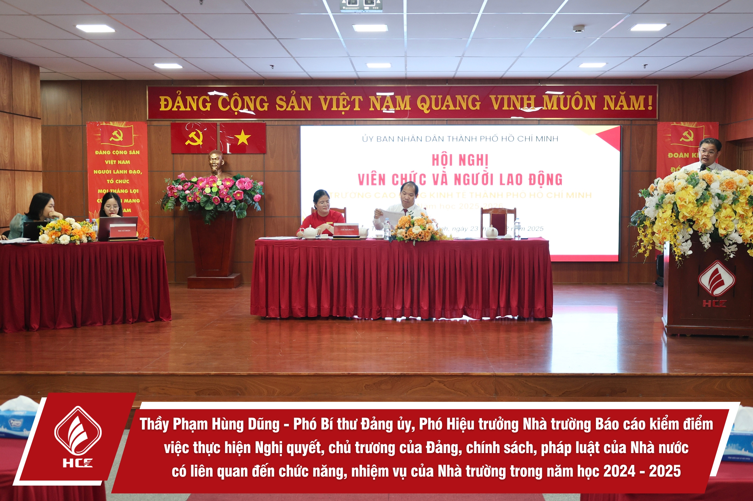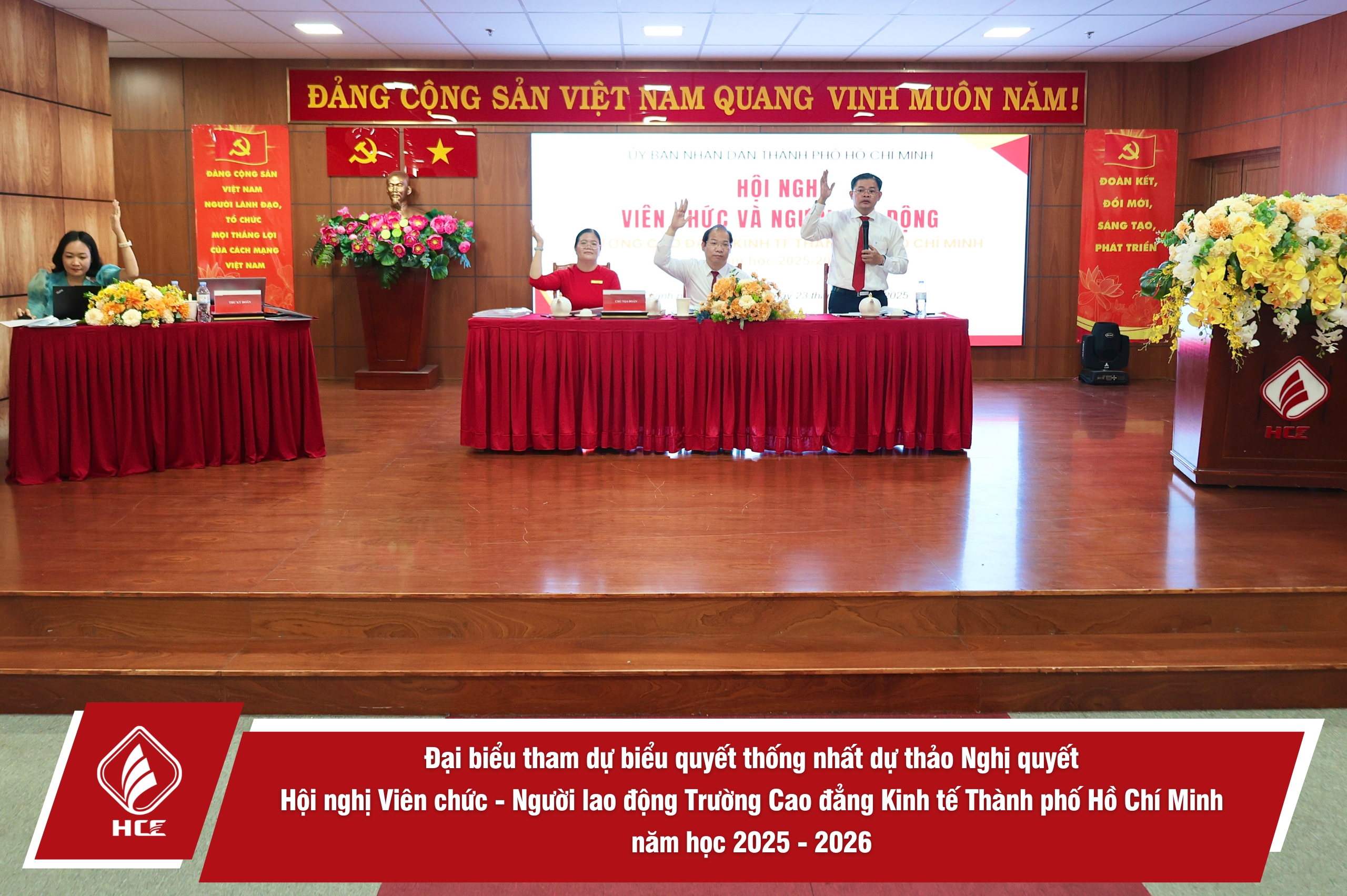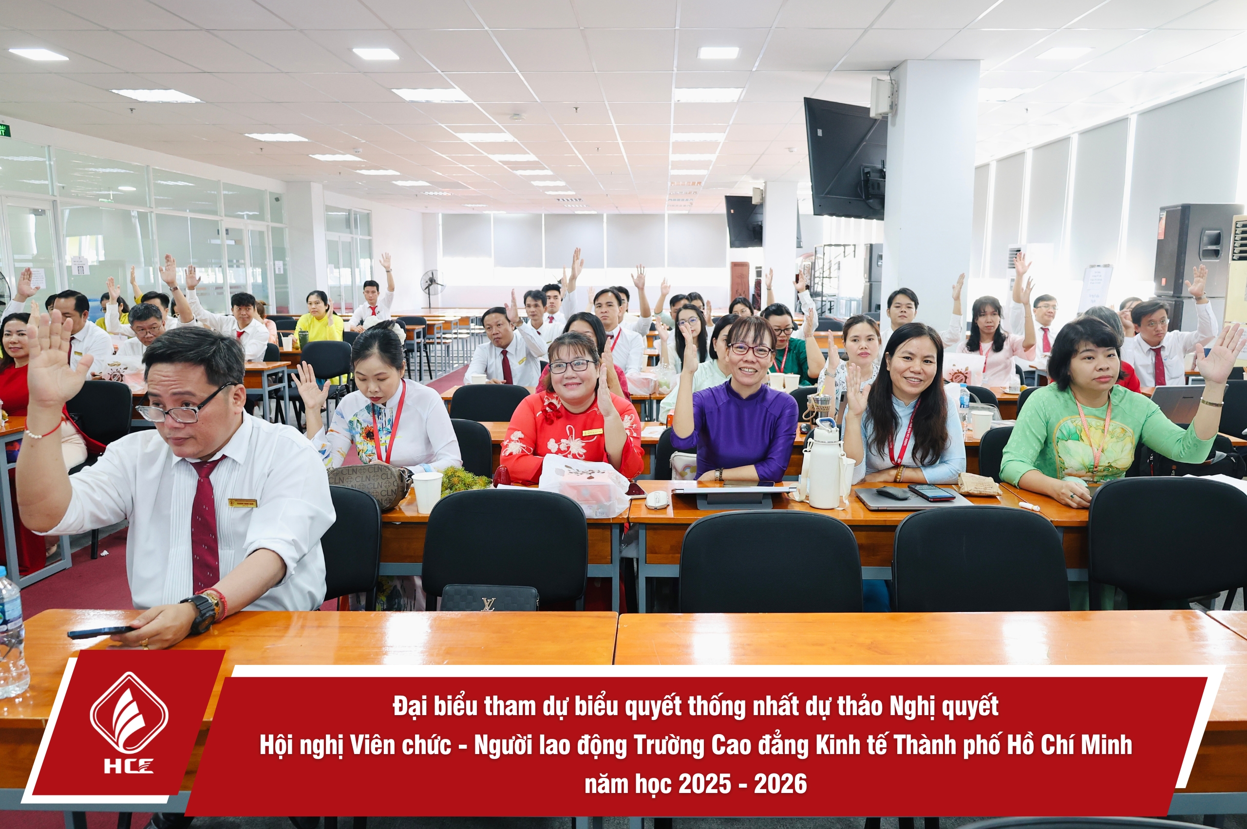 Thực hiện Luật Thực hiện dân chủ ở cơ sở và các văn bản chỉ đạo của cấp trên, Trường Cao đẳng Kinh tế Thành phố Hồ Chí Minh đã tổ chức Hội nghị Viên chức – Người lao động, năm học 2025–2026 với 02 phiên làm việc: ngày 22/12/2025 (Phiên Trù bị) và ngày 23/12/2025 (Phiên Chính thức).