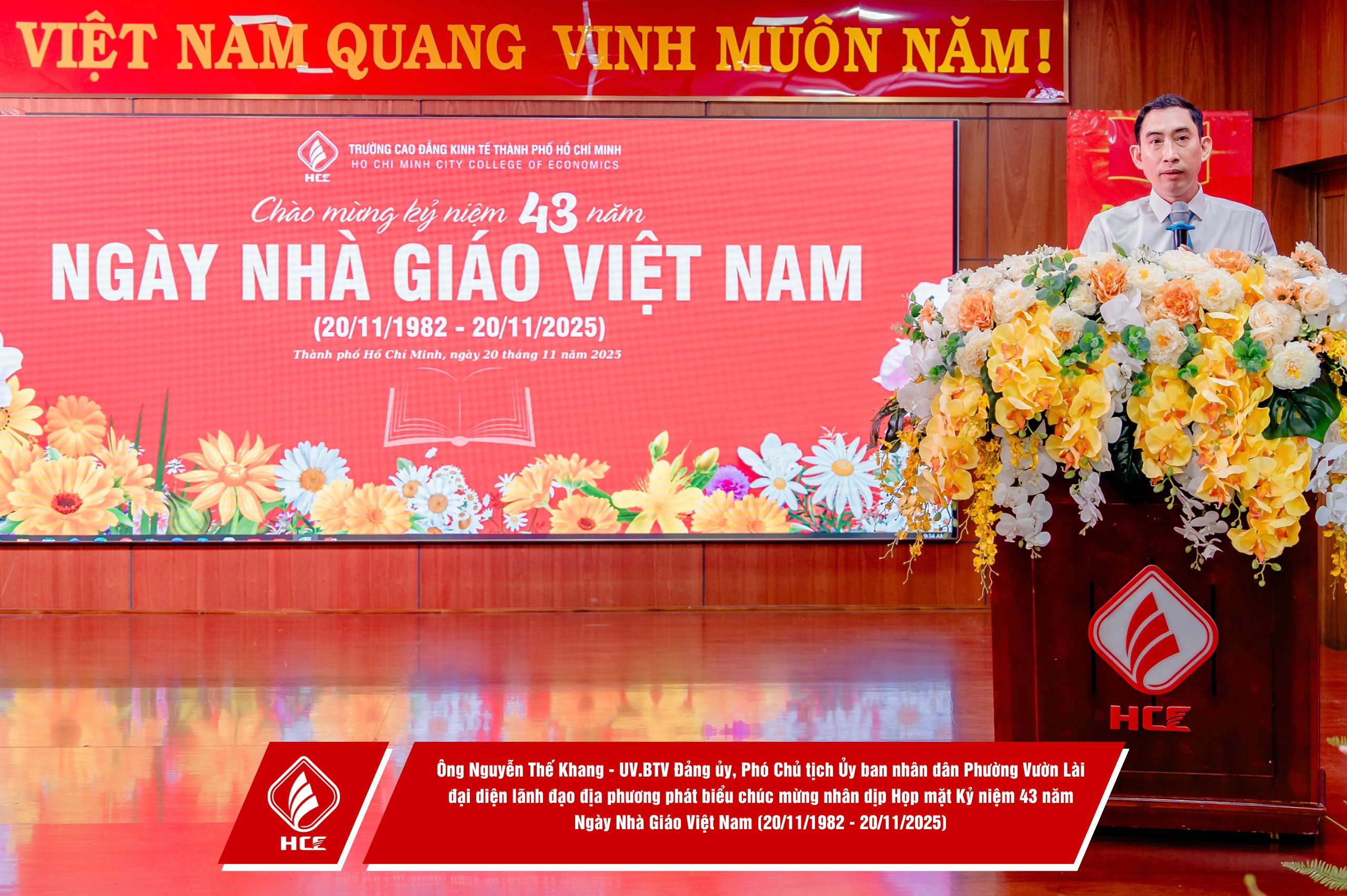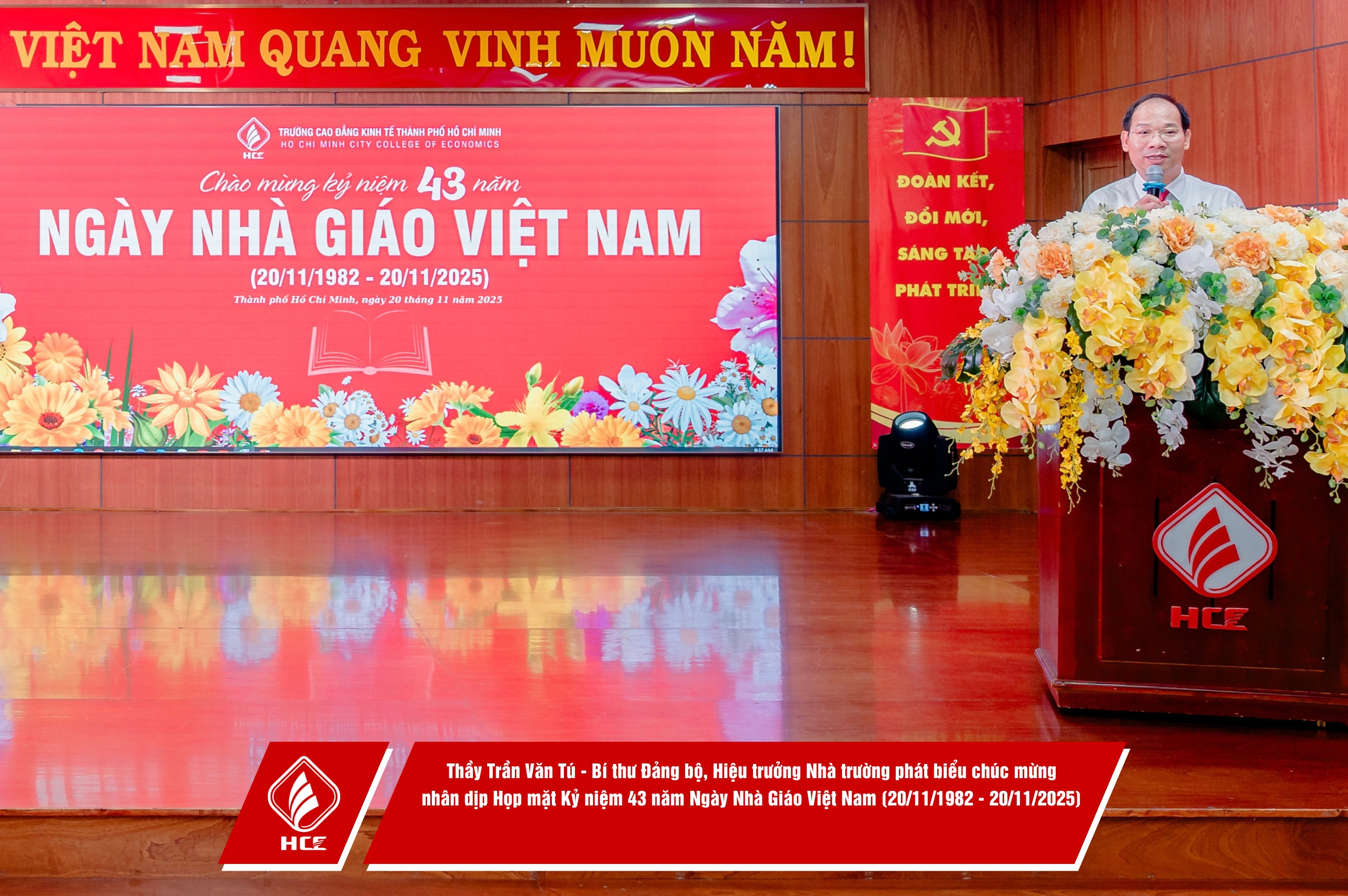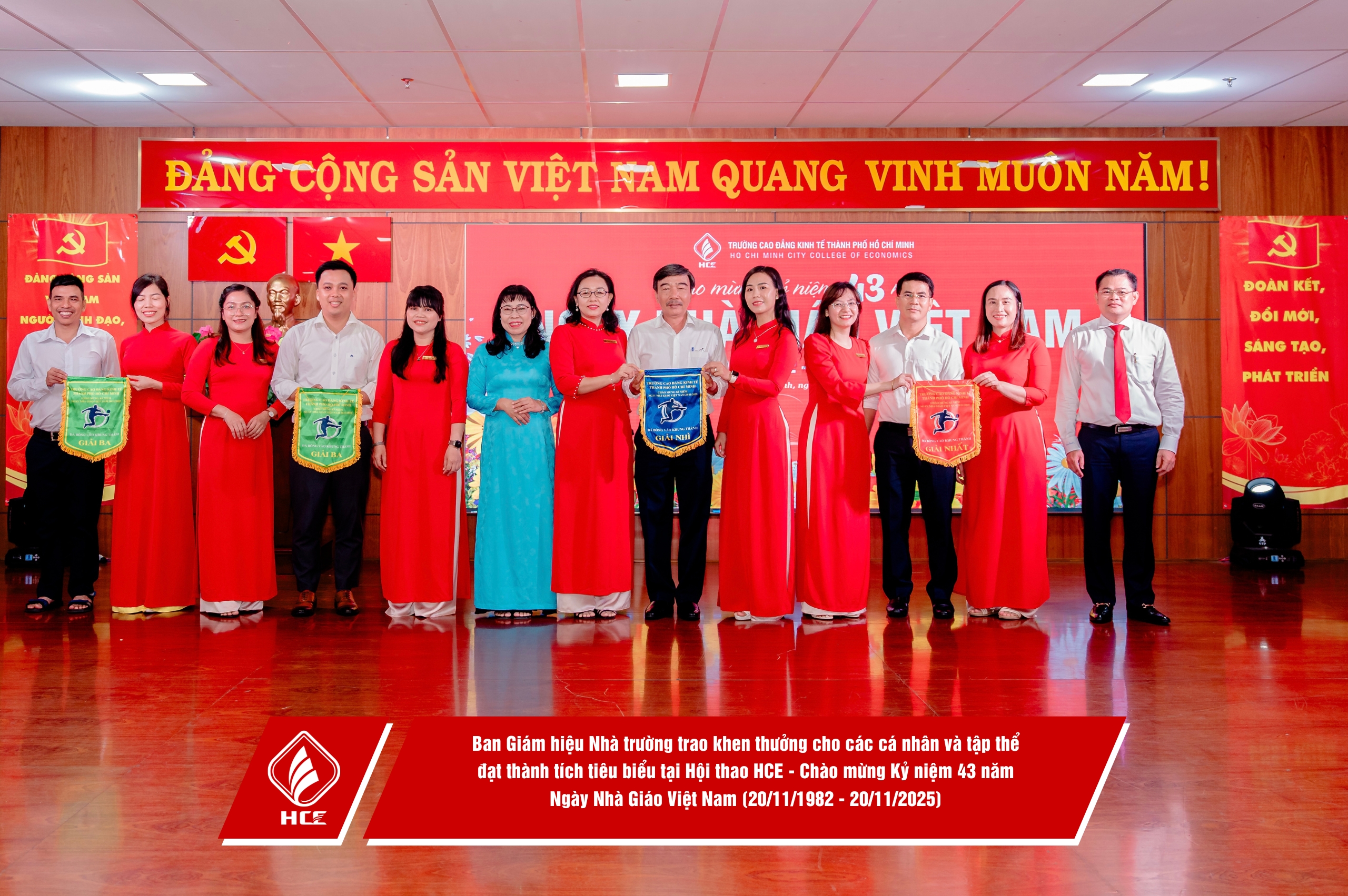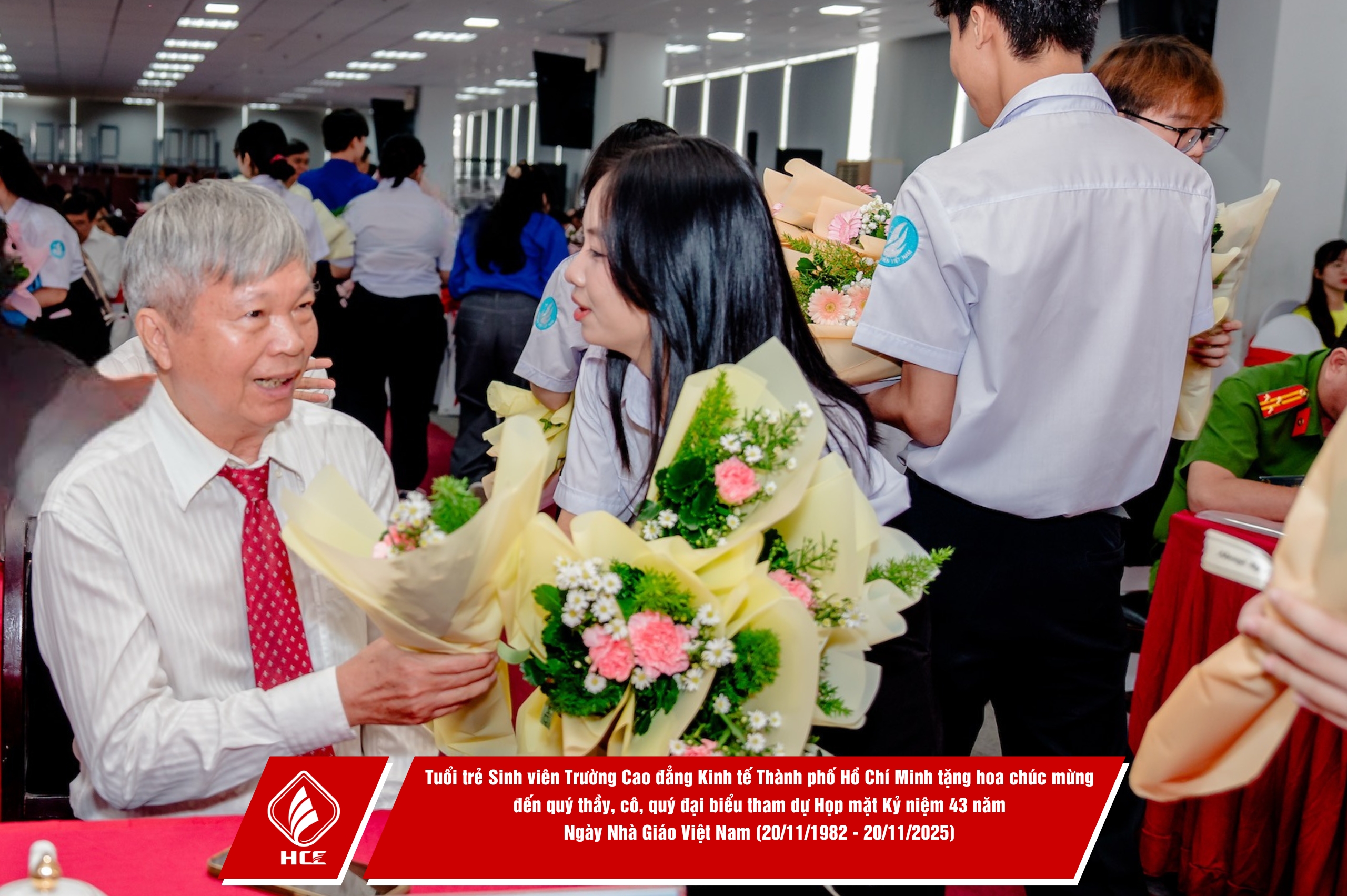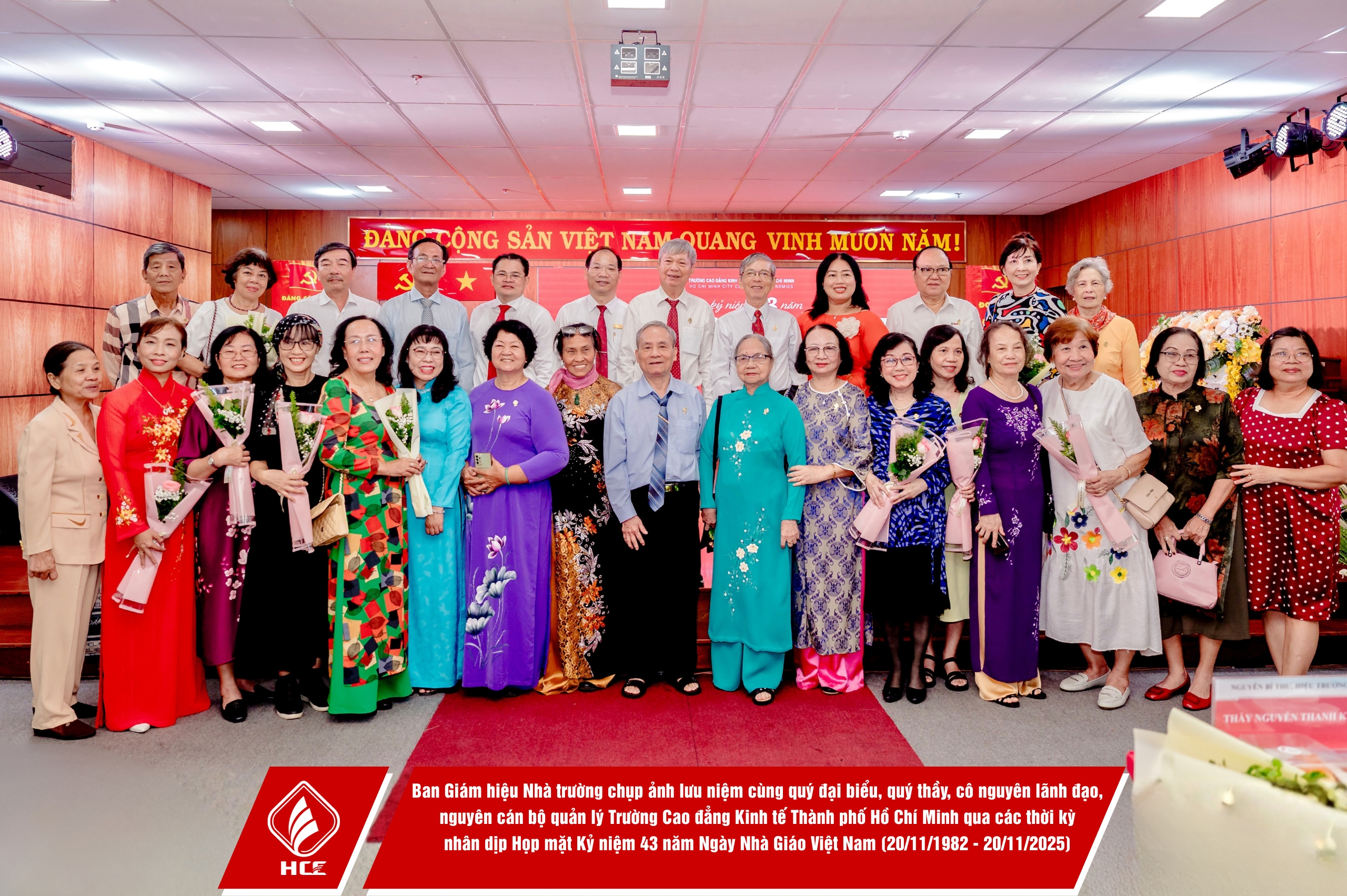 Trường Cao đẳng Kinh tế Thành phố Hồ Chí Minh (HCE) xin chân thành cảm ơn sự hiện diện và những lời chúc mừng từ quý vị đại biểu các đơn vị. Nhân dịp Kỷ niệm 43 năm Ngày Nhà giáo Việt Nam (20/11/1982 – 20/11/2025), HCE kính chúc quý thầy, cô giáo hưu trí qua các thời kỳ, quý vị đại biểu luôn dồi dào sức khỏe, hạnh phúc và tiếp tục truyền lửa đam mê cho bao thế hệ mai sau. Tôn sư trọng đạo – truyền thống quý báu của dân tộc ta mãi mãi được gìn giữ và lan tỏa!