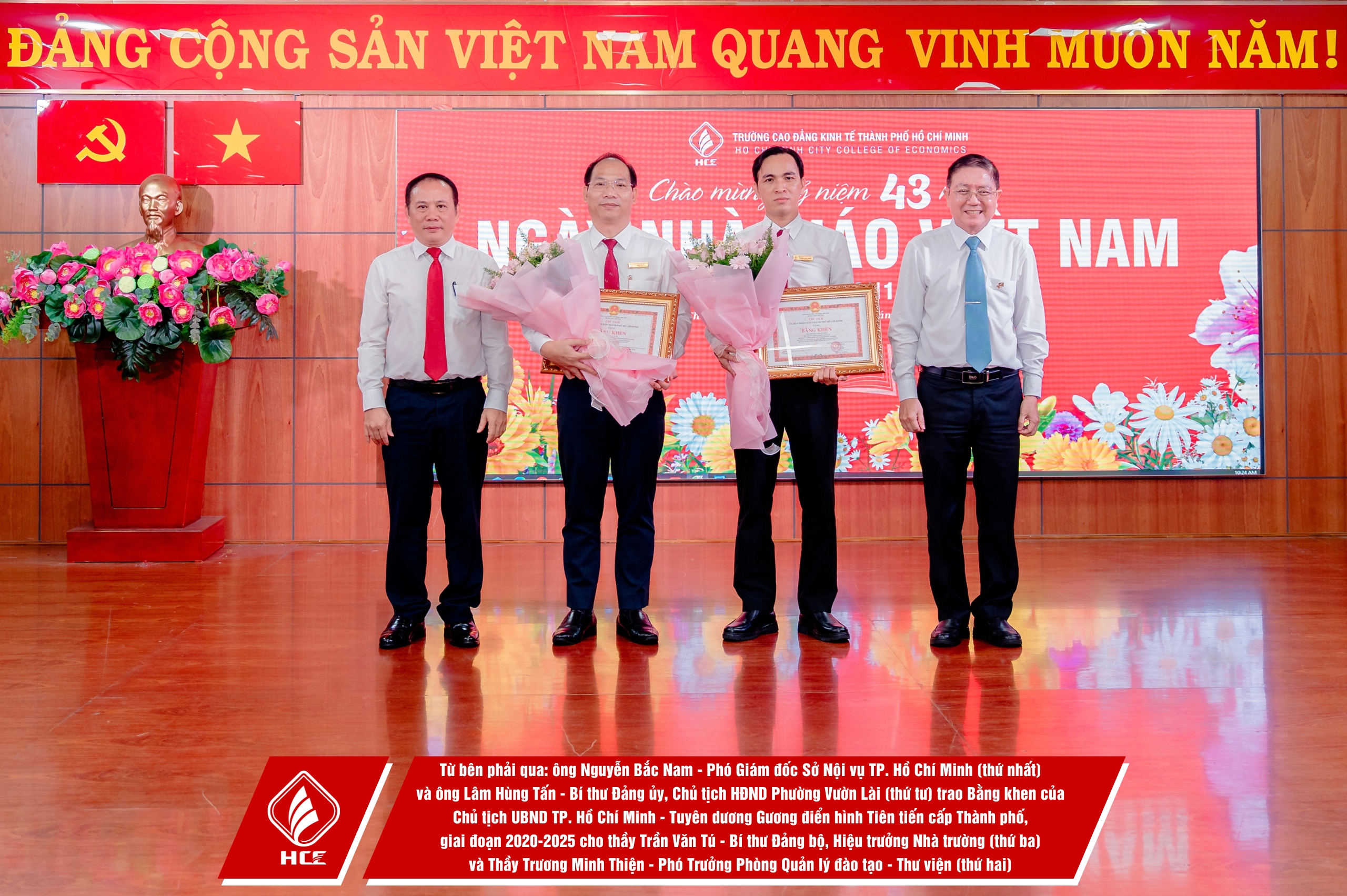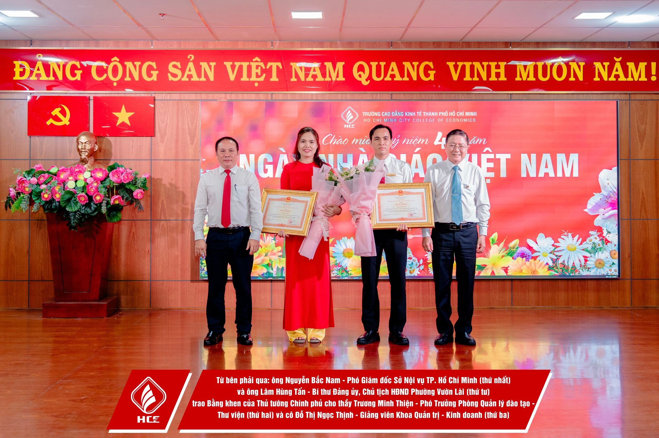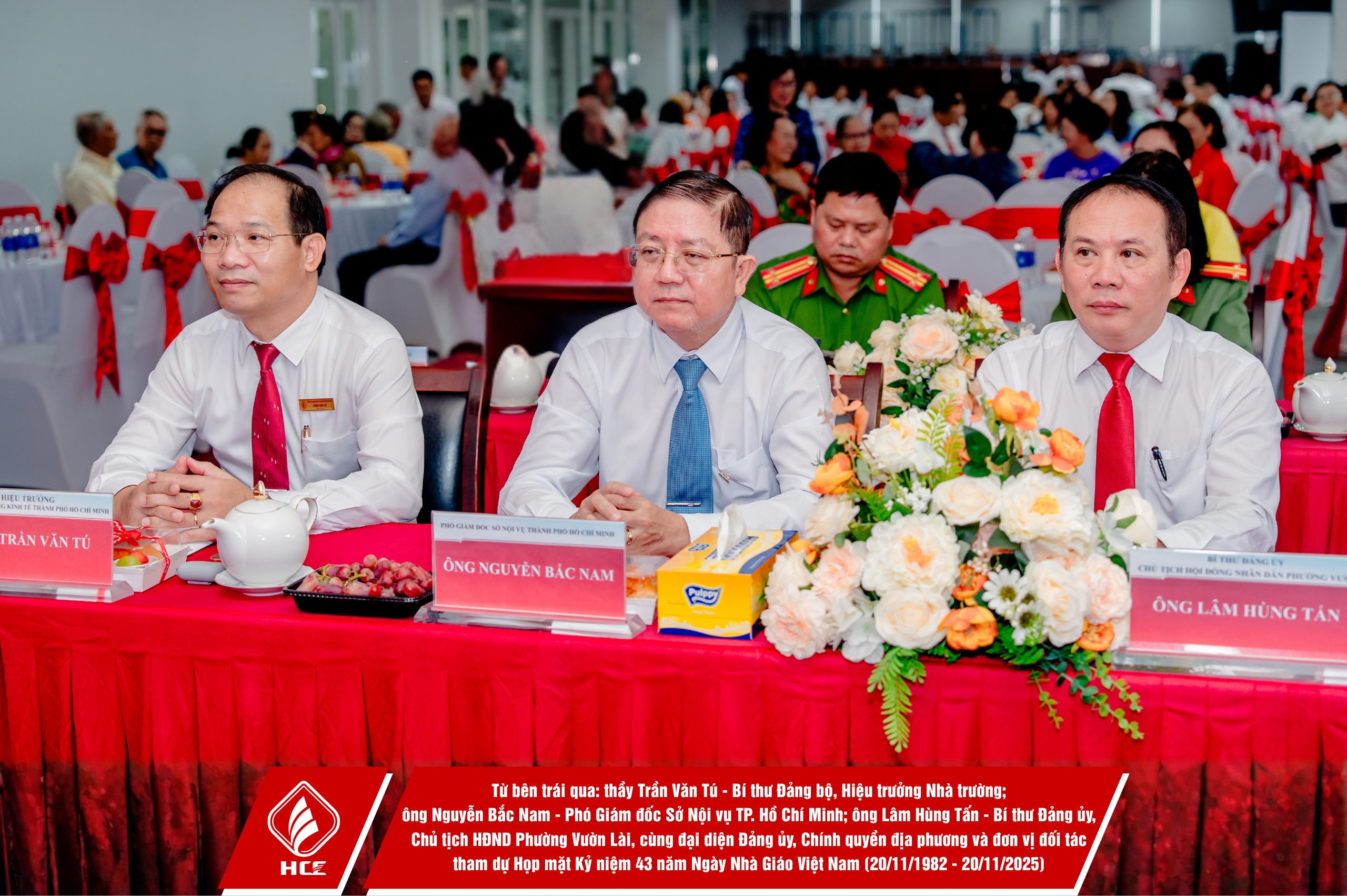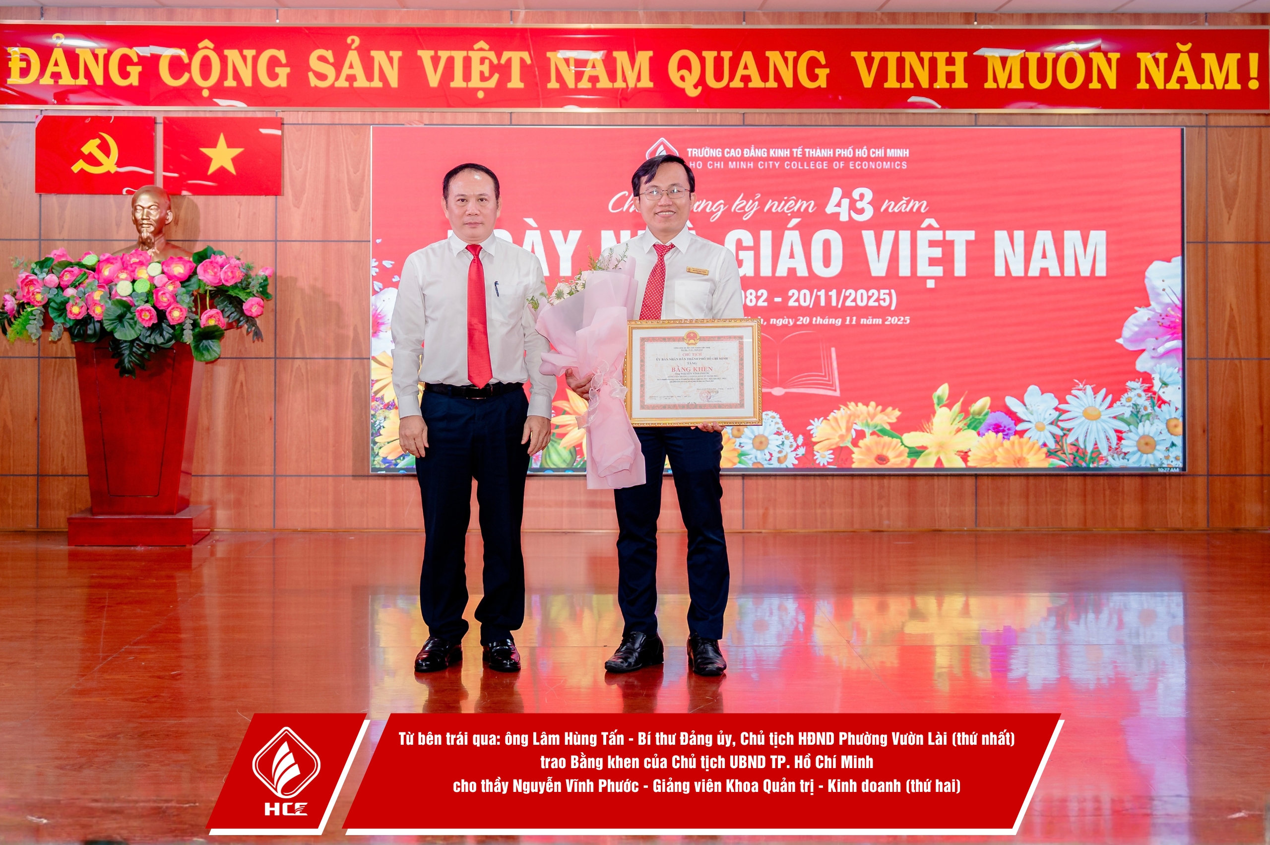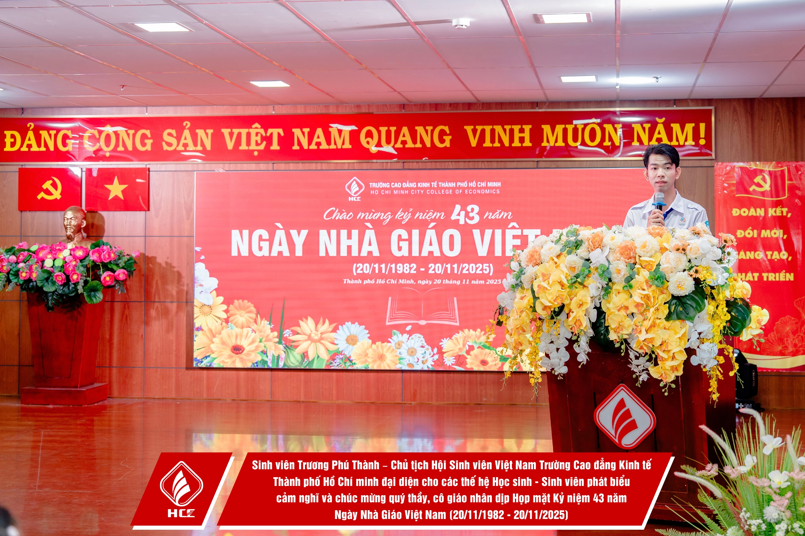 Trường Cao đẳng Kinh tế Thành phố Hồ Chí Minh (HCE) xin chân thành cảm ơn sự hiện diện và những lời chúc mừng từ quý vị đại biểu các đơn vị. Nhân dịp Kỷ niệm 43 năm Ngày Nhà giáo Việt Nam (20/11/1982 – 20/11/2025), HCE kính chúc quý thầy, cô giáo hưu trí qua các thời kỳ, quý vị đại biểu luôn dồi dào sức khỏe, hạnh phúc và tiếp tục truyền lửa đam mê cho bao thế hệ mai sau. Tôn sư trọng đạo – truyền thống quý báu của dân tộc ta mãi mãi được gìn giữ và lan tỏa!