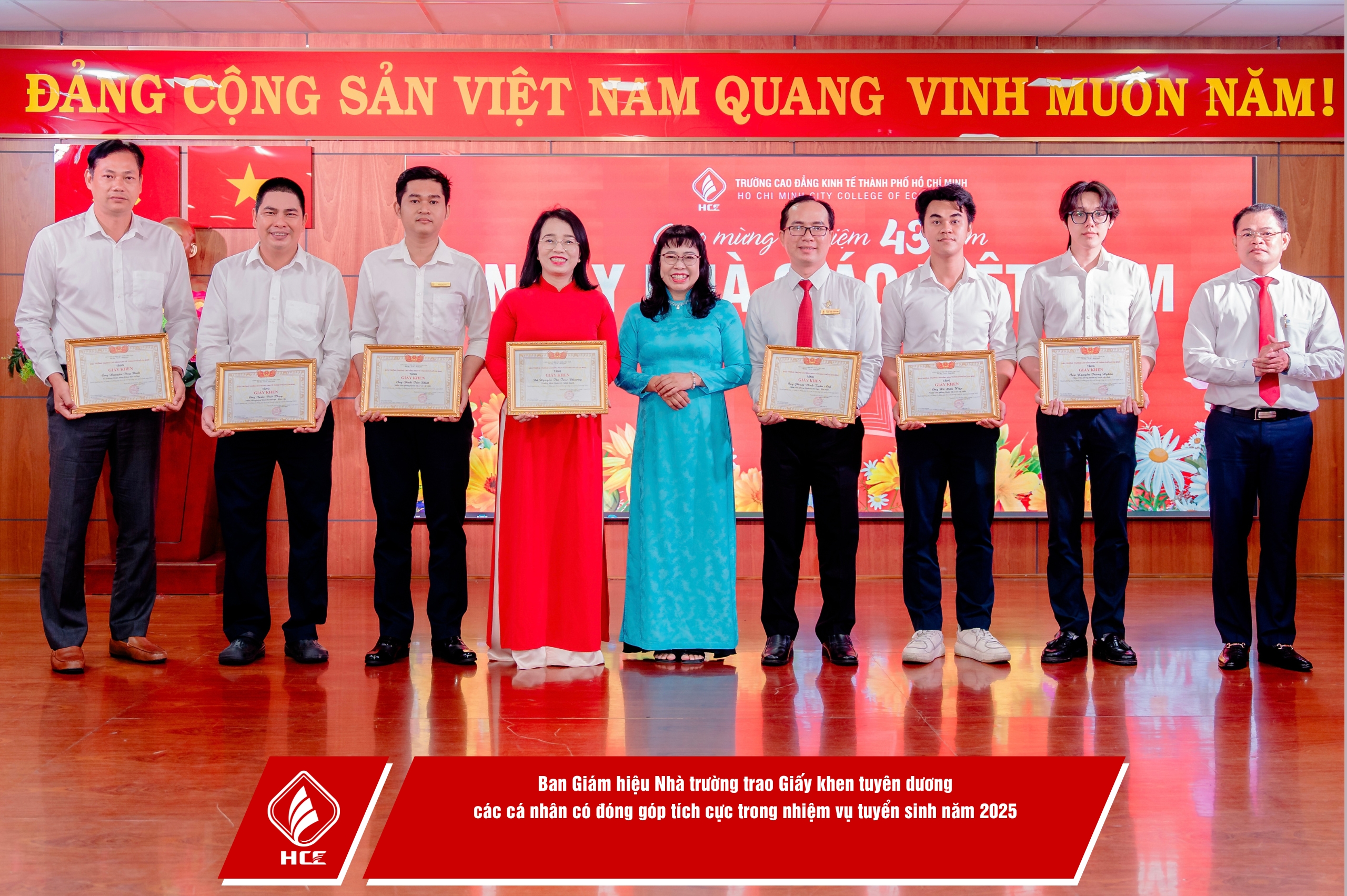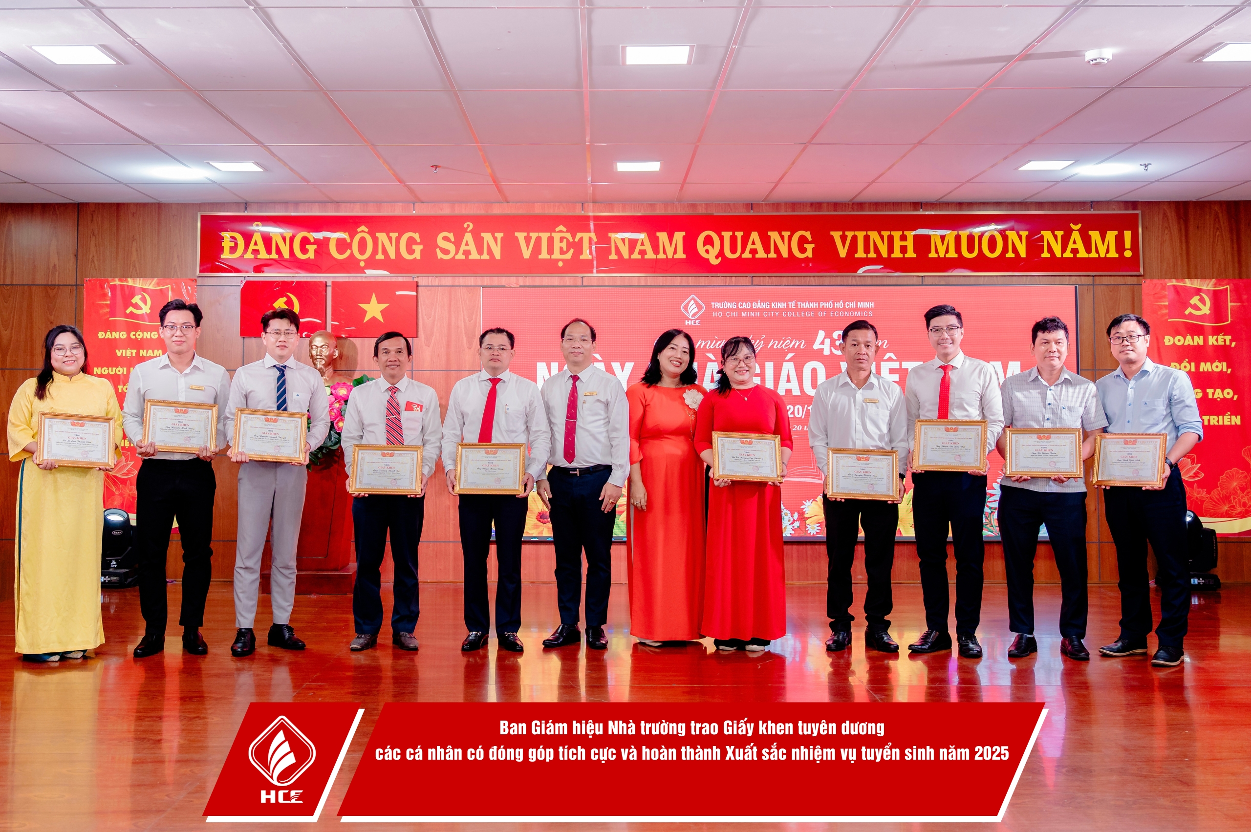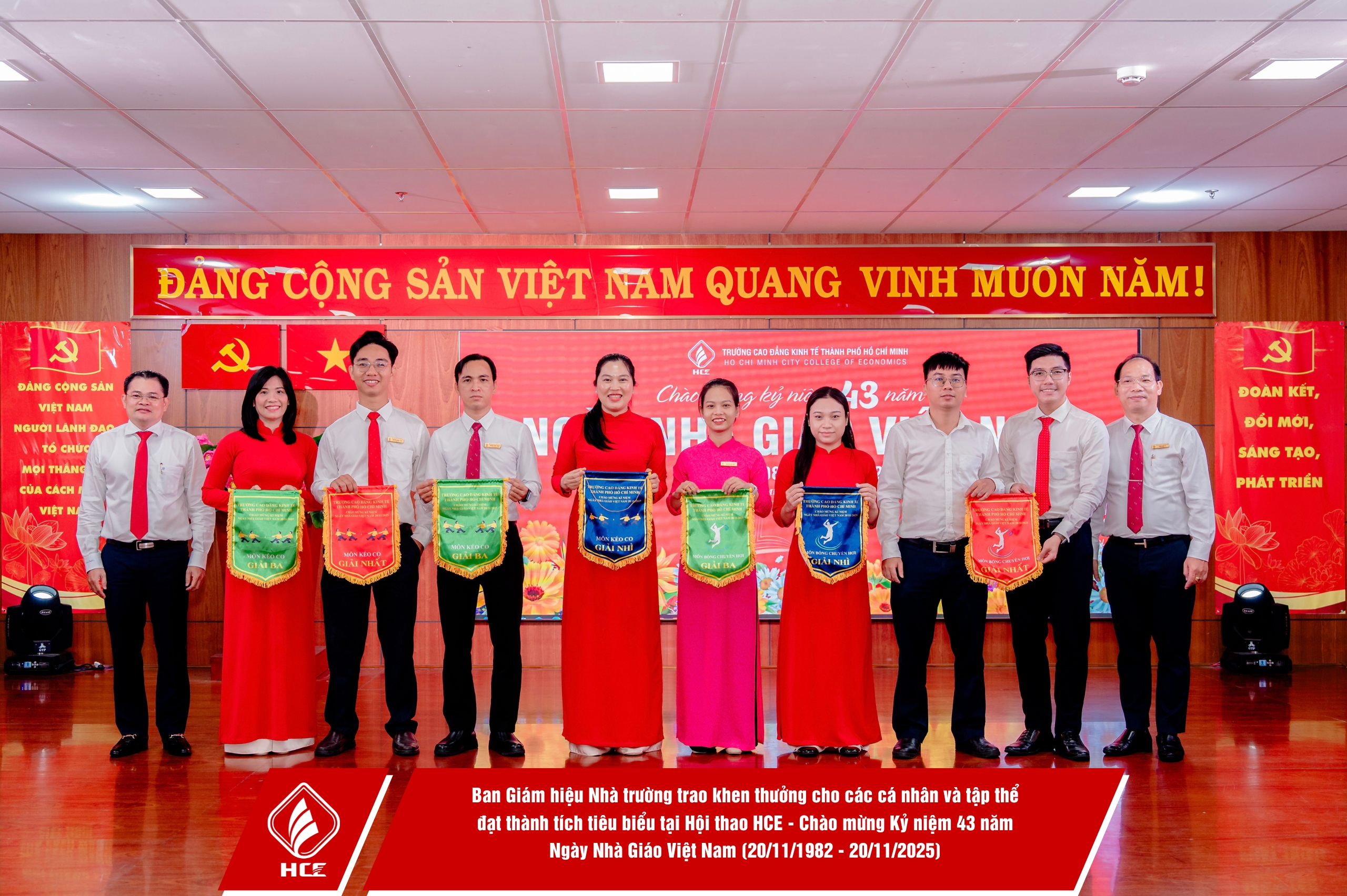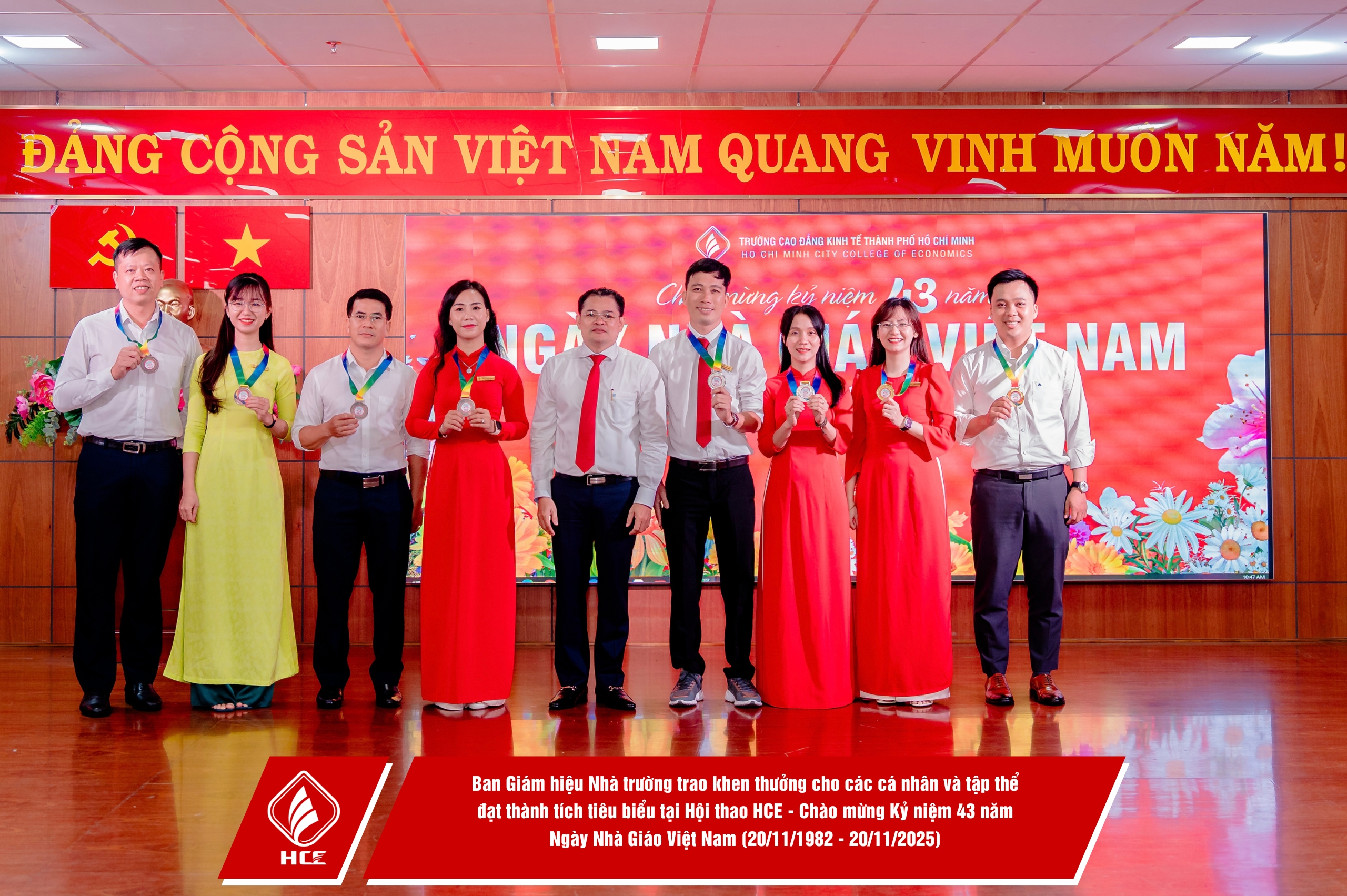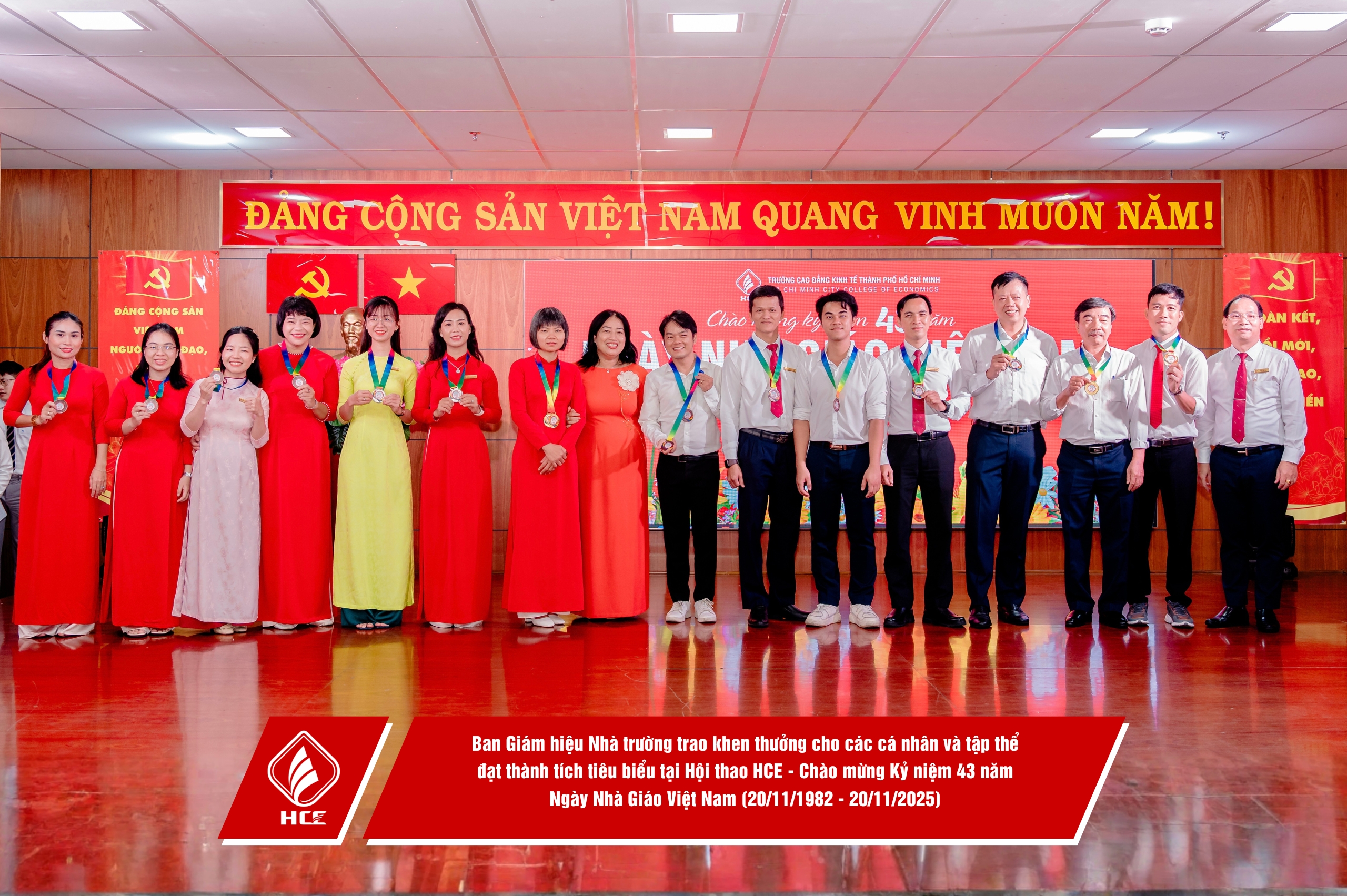 Sáng ngày 20/11/2025, Trường Cao đẳng Kinh tế Thành phố Hồ Chí Minh (HCE) đã long trọng tổ chức chương trình Họp mặt Kỷ niệm 43 năm Ngày Nhà giáo Việt Nam (20/11/1982 – 20/11/2025).