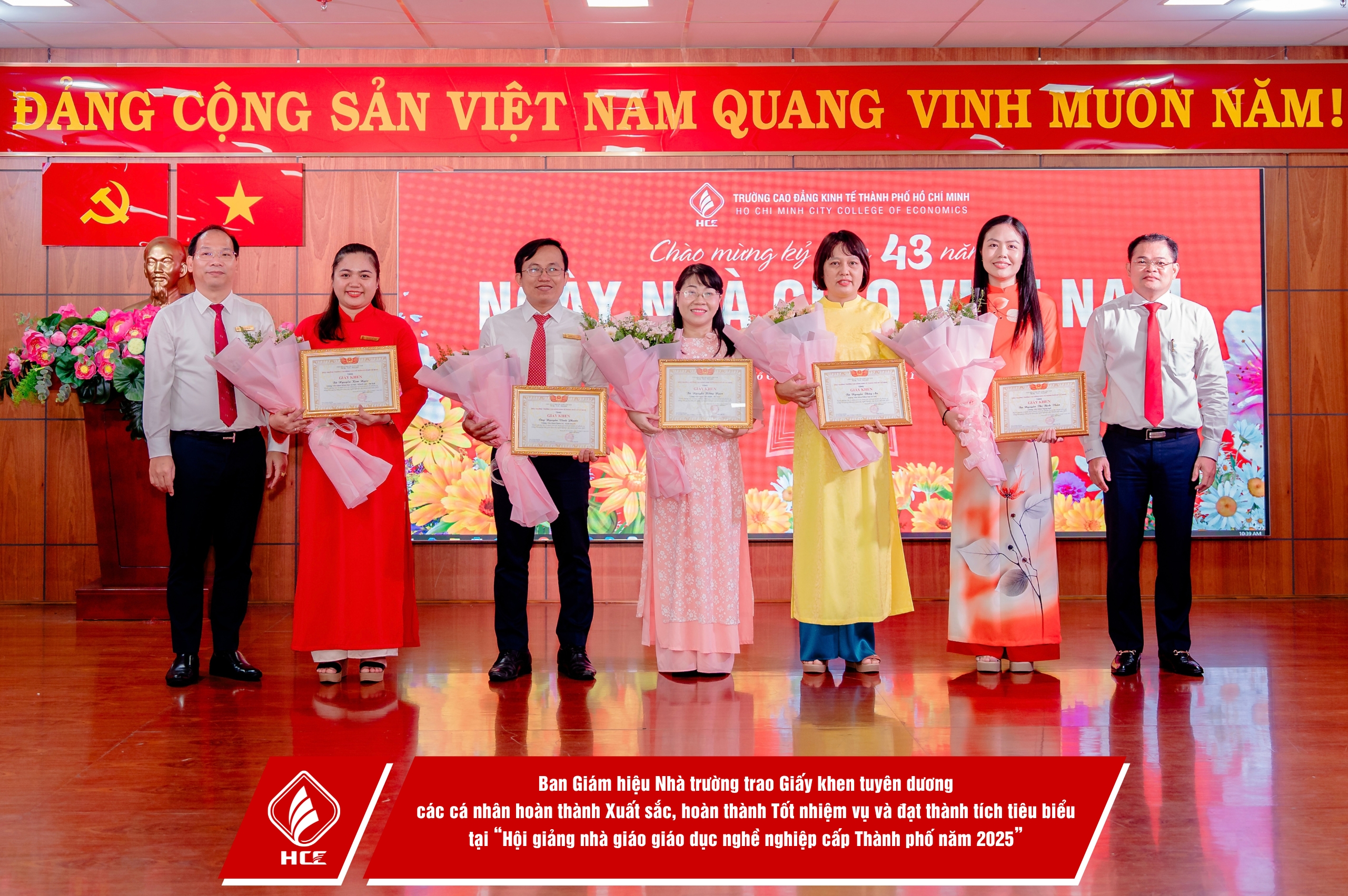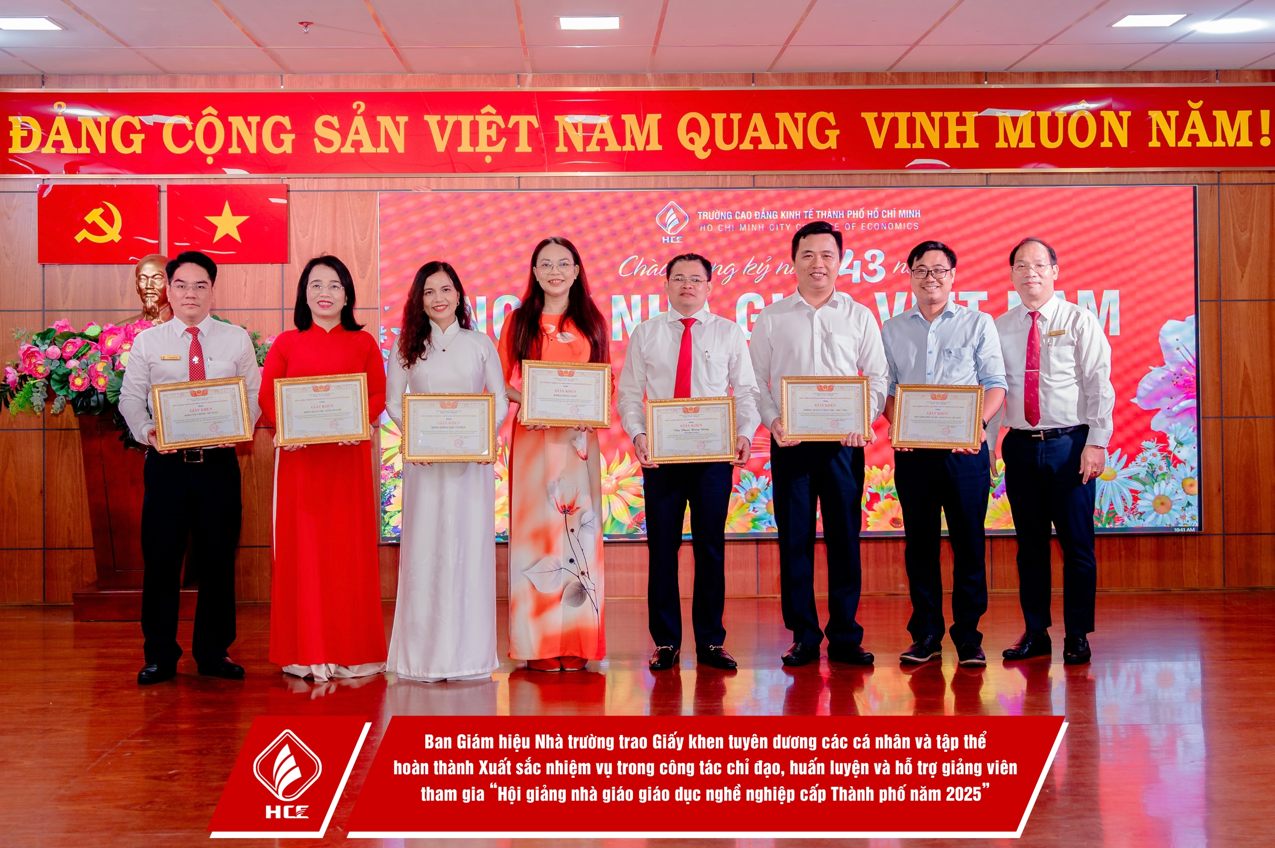 – Trao Bằng khen của Thủ tướng Chính phủ, Bằng khen của Chủ tịch UBND TP. Hồ Chí Minh, Bằng Khen Tuyên dương Gương điển hình Tiên tiến cấp Thành phố, giai đoạn 2020 – 2025 và Giấy khen của Trường Cao đẳng Kinh tế Thành Phố Hồ Chí Minh cho các tập thể, cá nhân đạt thành tích tiêu biểu.