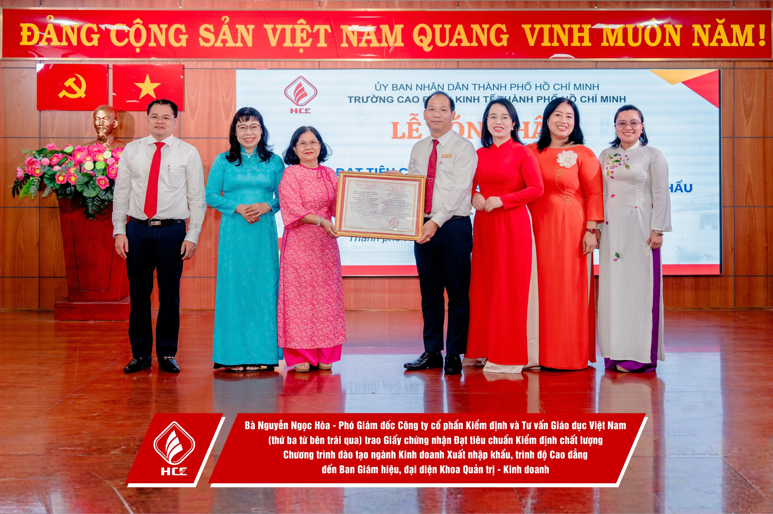 – Trao Giấy Chứng nhận Đạt tiêu chuẩn kiểm định chất lượng Chương trình đào tạo ngành Kinh doanh Xuất nhập khẩu.