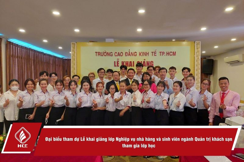 Khai giảng lớp nghiệp vụ, đại diện Ban Giám hiệu Nhà trường có cô Nguyễn Đặng An Long – Phó Hiệu trưởng Nhà trường, cùng sự có mặt của đầy đủ sinh viên lớp Nghiệp vụ nhà hàng, các thầy, cô khoa Khoa học xã hội và Quản lí công nghiệp.