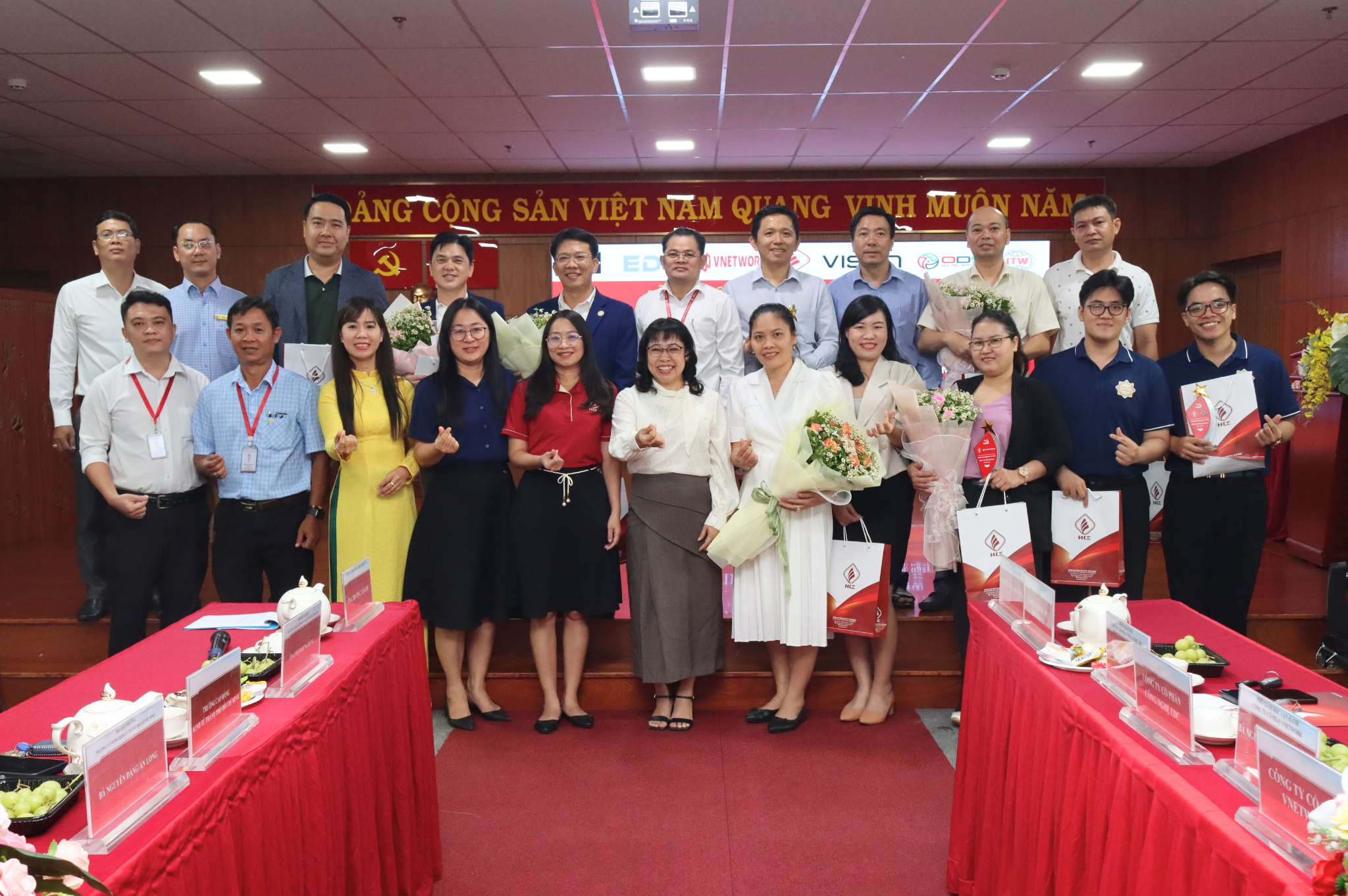 Về phía HCE, TS. Nguyễn Đặng An Long – Uỷ viên Ban chấp hành Đảng bộ Sở Giáo dục và Đào tạo, Phó Hiệu trưởng Nhà trường; TS. Phạm Hùng Dũng – Phó Bí thư Đảng bộ, Phó Hiệu trưởng Nhà trường; Thầy Trương Tấn Lộc – Trưởng khoa Công nghệ thông tin; Thầy Lý Tiến – Trưởng phòng Quan hệ hợp tác – Quản lý khoa học – Thư viện; Thầy Nguyễn Thanh Tâm – Phó Giám đốc Trung tâm Truyền thông – Tuyển sinh; Cô Trần Thị Thảo Hương – Phó Trưởng phòng Quan hệ hợp tác – Quản lý khoa học – Thư viện cùng các thầy cô là giảng viên và sinh viên Công nghệ thông tin.