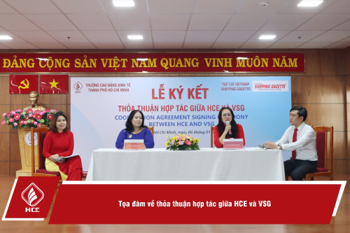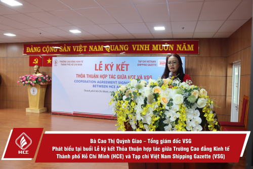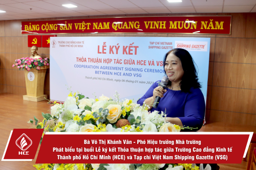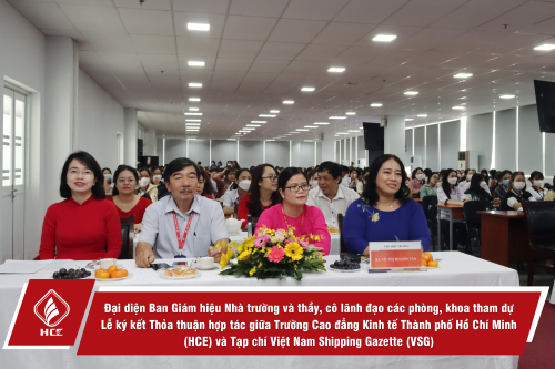 Ngày 06/01/2023 tại trường Cao đẳng Kinh tế Thành phố Hồ Chí Minh (HCE) đã diễn ra Lễ ký kết Thỏa thuận hợp tác với Tạp chí Việt Nam Shipping Gazette (VSG). Buổi lễ đã lan tỏa ý nghĩa của thông điệp về việc thắt chặt mối quan hệ hợp tác cùng phát triển giữa nhà trường và doanh nghiệp trong bối cảnh mới với mục đích tạo cơ hội cho người học được tham quan, thực tập, thực tế tại doanh nghiệp; góp phần nâng cao năng lực học tập, nghiên cứu của người học khi đổi mới phương pháp đào tạo thích ứng với thời kỳ chuyển đổi số và góp phần nâng cao chất lượng đào tạo nguồn nhân lực của nhà trường cũng như đáp ứng nhu cầu việc làm của doanh nghiệp.