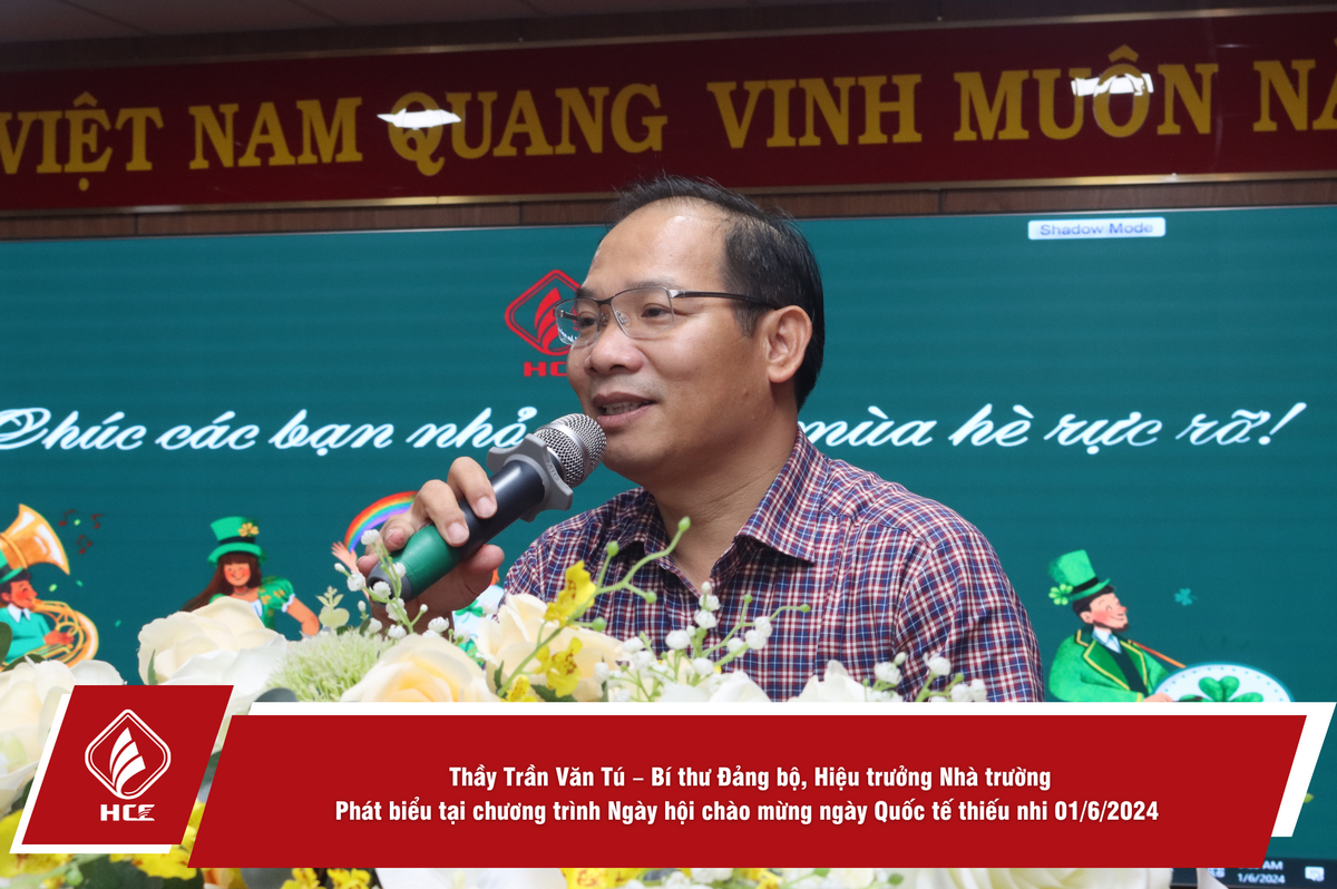 Thay mặt Nhà trường, Thầy Trần Văn Tú – Bí thư Đảng bộ, Hiệu trưởng Nhà trường phát biểu chúc mừng các bạn nhỏ nhân ngày Quốc tế thiếu nhi, chúc các bé sẽ có những hoạt động trải nghiệm thật thú vị tại ngày hội và cả trong những ngày hè sắp đến.