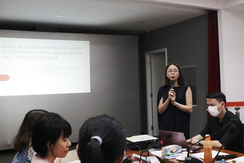 Bàn về việc giảng dạy tiếng Anh chuyên ngành tại trường, Cô Trần Thị Hồng Thi – Phó Chủ Nhiệm Khoa nêu quan điểm: việc cho rằng các giảng viên chuyên ngành thông thạo tiếng Anh có thể giảng dạy tiếng Anh chuyên ngành là một quan điểm chưa chính xác. Giảng dạy tiếng Anh chuyên ngành khác hoàn toàn với việc giảng dạy chuyên ngành bằng tiếng Anh về bản chất, nội dung, phương pháp. Giảng dạy tiếng Anh chuyên ngành là một phần của giảng dạy tiếng Anh và đòi hỏi giảng viên phải có những kiến thức và kỹ năng nhất định về giảng dạy tiếng Anh mới có thể giảng dạy một cách hiệu quả. Việc giảng dạy tiếng Anh chuyên ngành tại trường Cao đẳng Kinh tế TPHCM cần sự phối hợp đồng bộ giữa người dạy, người học và các cấp quản lý để ngày càng mang tính hiệu quả và thiết thực hơn.