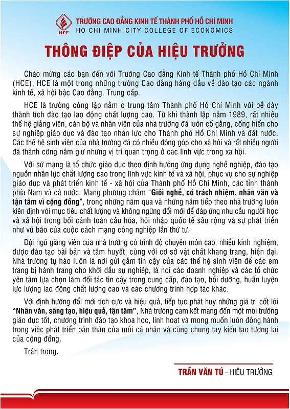 11/01/2021 2023-10-11 9:12THÔNG ĐIỆP CỦA HIỆU TRƯỞNG TRƯỜNG CAO ĐẲNG KINH TẾ THÀNH PHỐ HỒ CHÍ MINH CHÀO ĐÓN NĂM HỌC 2021 – 2022