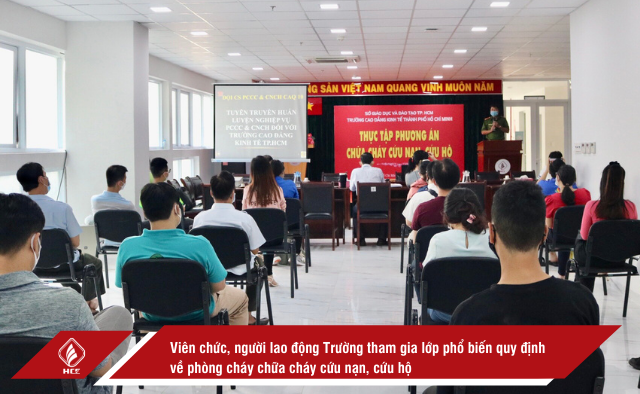 Nhằm tạo điều kiện cho toàn thể viên chức, người lao động tại Nhà trường nắm rõ, nắm vững quy trình phòng cháy chữa cháy và cứu nạn – cứu hộ Trường Cao đẳng Kinh tế Thành phố Hồ Chí Minh phối hợp với Đội phòng cháy chữa cháy (PCCC) – cứu nạn cứu hộ Quận 10 đã tổ chức buổi diễn tập thực tế tại khu C của trường.
