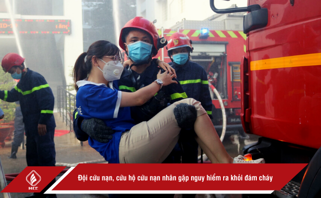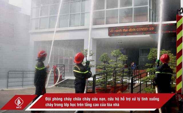 Ngay khi phát hiện đám cháy, cùng với hệ thống chuông báo cháy, đội PCCC của trường đã nhanh chóng hướng dẫn cán bộ, giảng viên di tản bằng cầu thang thoát hiểm, sử dụng các phương tiện PCCC tại chỗ như họng nước cứu hỏa, bình bọt…để tiếp cận, phong tỏa đám cháy và sơ cứu người bị nạn đồng thời thông báo cho lực lượng PCCC chuyên nghiệp đến trợ giúp. Kết quả, trong một thời gian ngắn đám cháy đã được dập tắt hoàn toàn, tất cả mọi người và tài sản đều được an toàn.