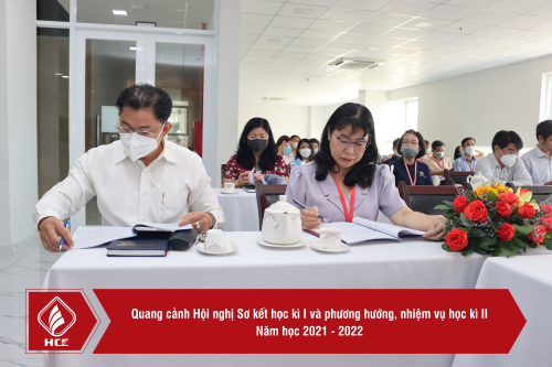 Tại Hội nghị, đại diện Phòng Đào tạo, cô Hồ Nguyễn Cúc Phương – Trưởng Phòng Đào tạo đã báo cáo Sơ kết học kì I với các nội dung trọng tâm: Về số lượng, chất lượng đội ngũ giảng viên, nhân viên của đơn vị tính đến ngày 28 tháng 02 năm 2022. Nổi bật trong đó là những nỗ lực rất lớn của tập thể Nhà trường trong những khó khăn do đại dịch Covid_19 gây ra.