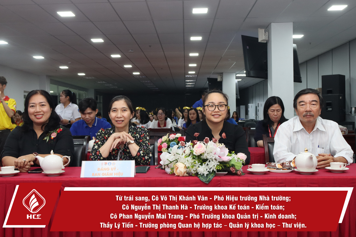 Đến tham dự lễ tuyên dương, Cô Võ Thị Khánh Vân – Phó Hiệu trưởng Nhà trường; Cô Nguyễn Thị Thanh Hà – Trưởng Khoa Kế toán – Kiểm toán; Cô Phan Nguyễn Mai Trang – Phó Trưởng khoa Quản trị – Kinh doanh; Thầy Lý Tiến – Trưởng phòng Quan hệ hợp tác – Quản lý khoa học – Thư viện, Đồng chí Trần Nguyễn Minh Nhựt – Bí thư Đoàn trường và hơn 100 bạn sinh viên đang theo học tại HCE.
