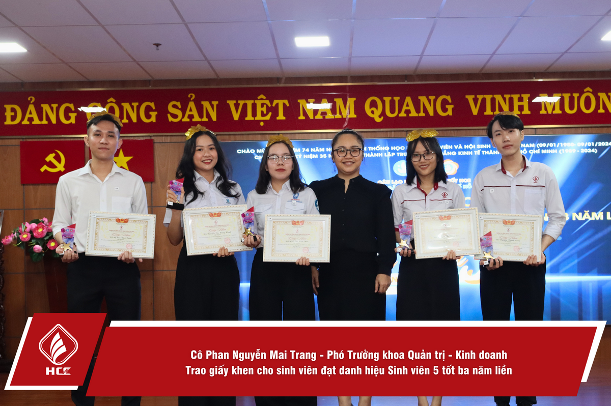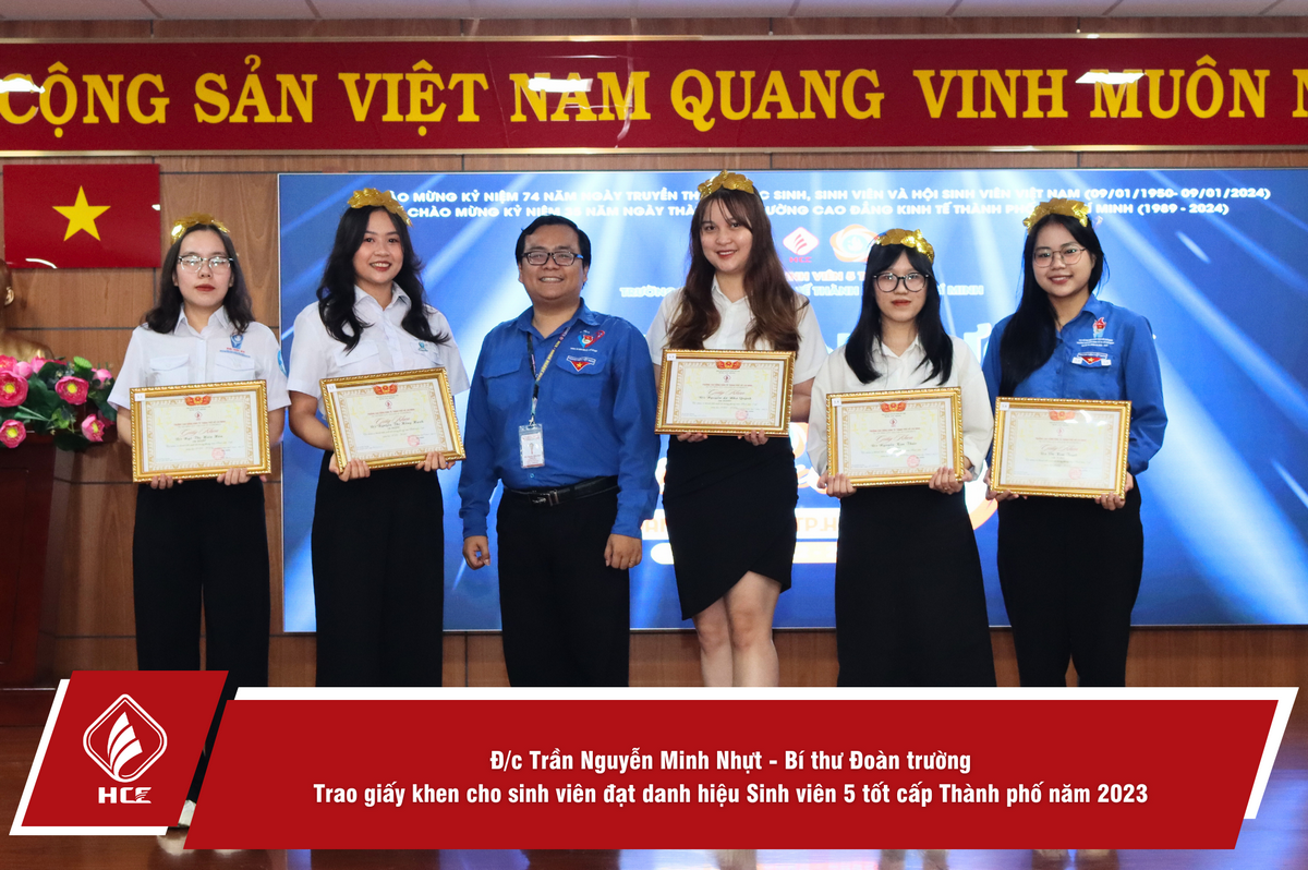 Ngày 19/01/2024, tại Hội trường A306, Hội Sinh viên Việt Nam Trường Cao đẳng Kinh tế Thành phố Hồ Chí Minh (HCE) đã tổ chức lễ tuyên dương “Sinh viên 5 tốt” các cấp và Danh hiệu Sao Tháng Giêng cấp Trung ương năm 2023.