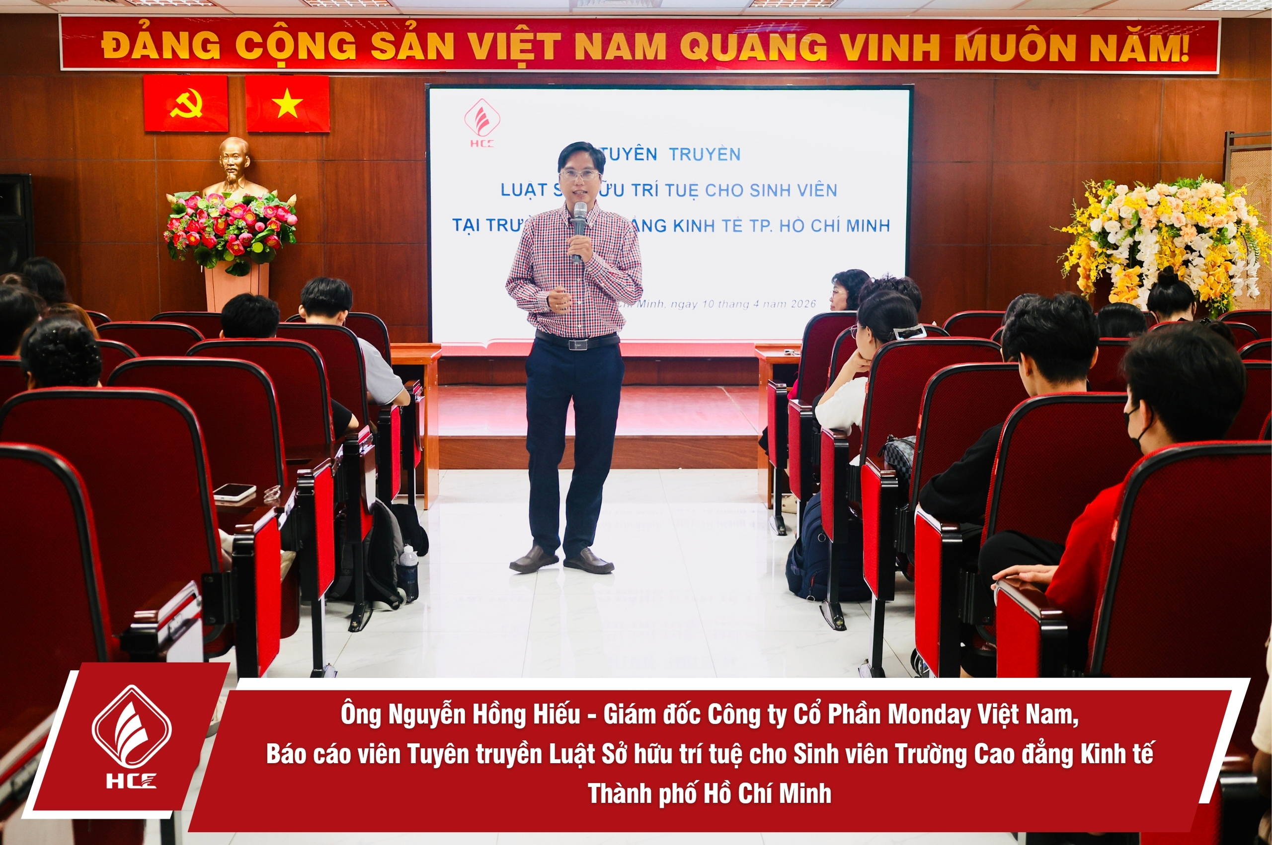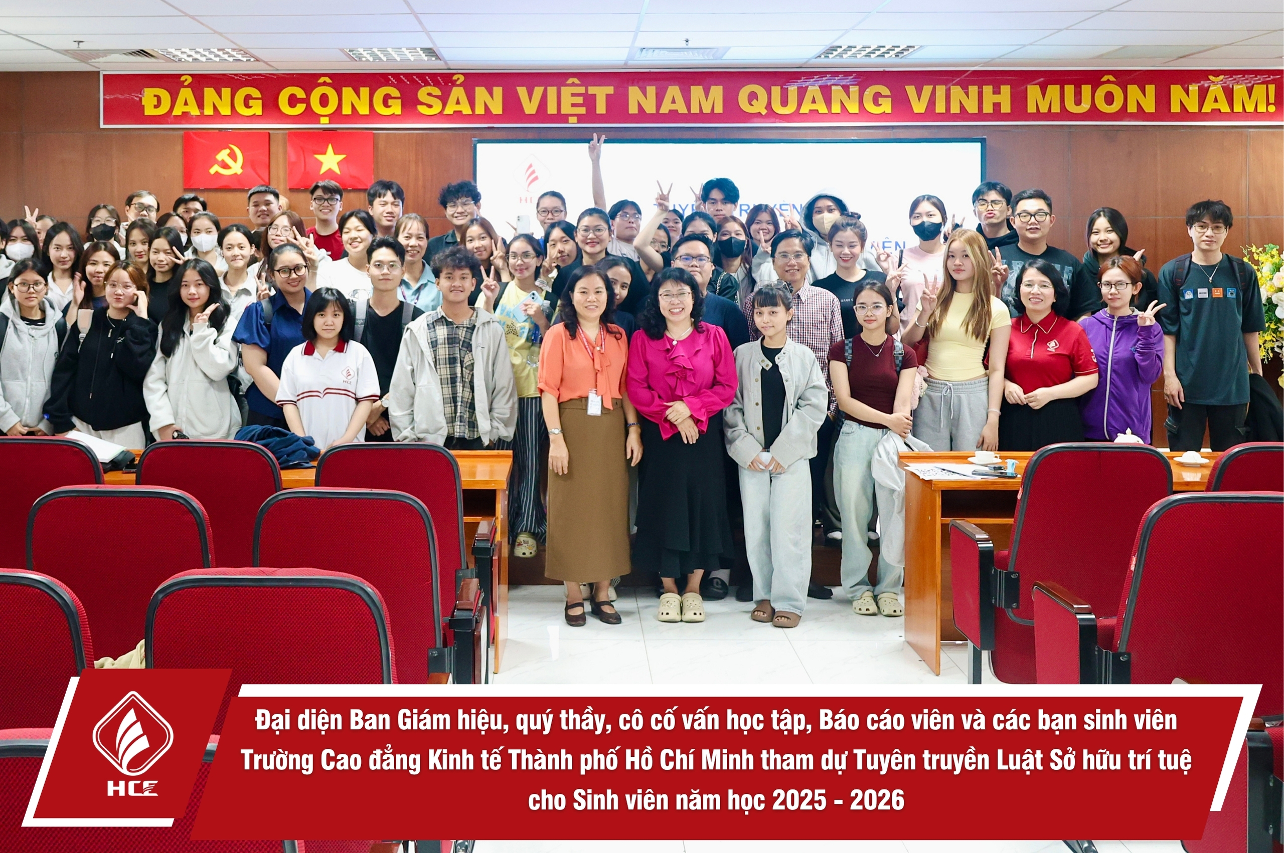 Sáng ngày 10/4/2026 , Trường Cao đẳng Kinh tế Thành phố Hồ Chí Minh (HCE) đã tổ chức Tuyên truyền Luật Sở hữu trí tuệ dành cho sinh viên, năm học 2025 – 2026.